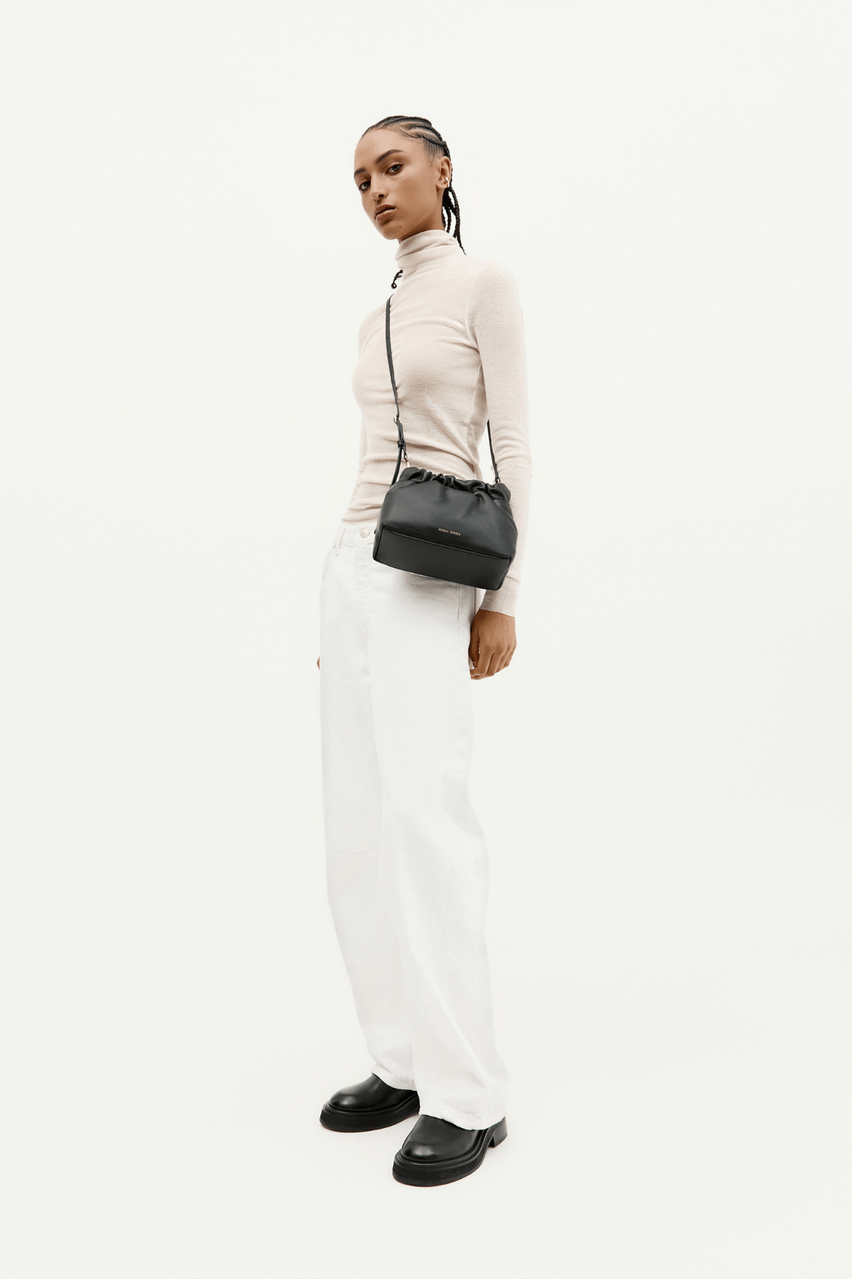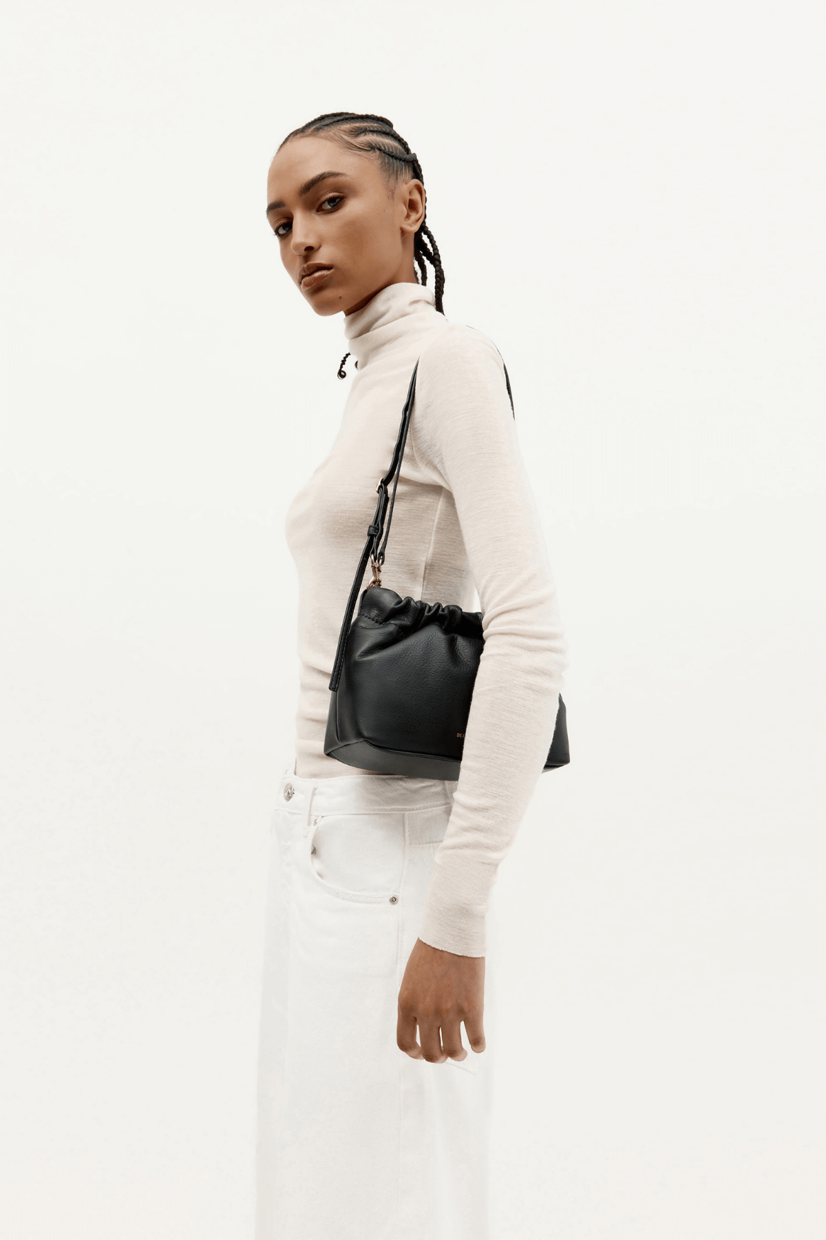 The Mr Cinch Mini in Black is a sculptural Nappa leather crossbody by Deadly Ponies, featuring a curved cinched silhouette and removable chain for multi-way wear. Structured yet soft, Mr Cinch Mini is designed to move with you. With its cinched silhouette and glinting brass hardware, this compact handbag delivers everyday practicality with a refined edge. Wear it crossbody, on your shoulder, or carry by hand—ideal for city strolls, events, or day-to-night dressing.