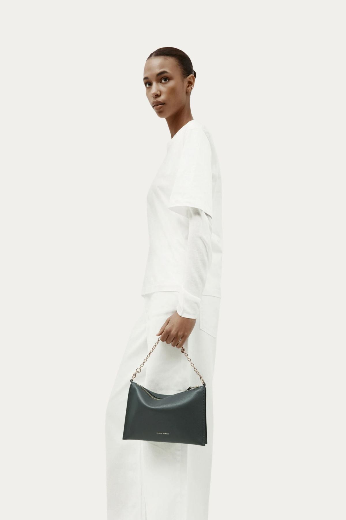 The Mr Siamese in Spruce by Deadly Ponies is crafted from a single piece of buttery calf nappa leather, forming a smooth, streamlined silhouette that feels refined yet effortless. The deep spruce green brings a rich, grounded tone that feels modern and versatile, while the clean construction allows the shape and craftsmanship to speak for themselves. It’s a piece designed to feel considered without ever feeling overworked.