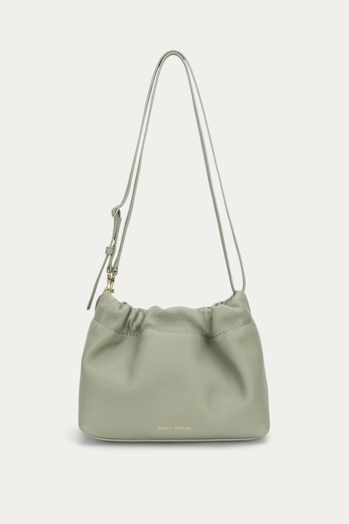 Mr Cinch Mini in Kina Calf Nappa by Deadly Ponies combines soft curves with cinched detailing, a magnetic closure, and a detachable strap - perfect for versatile, elegant carrying.