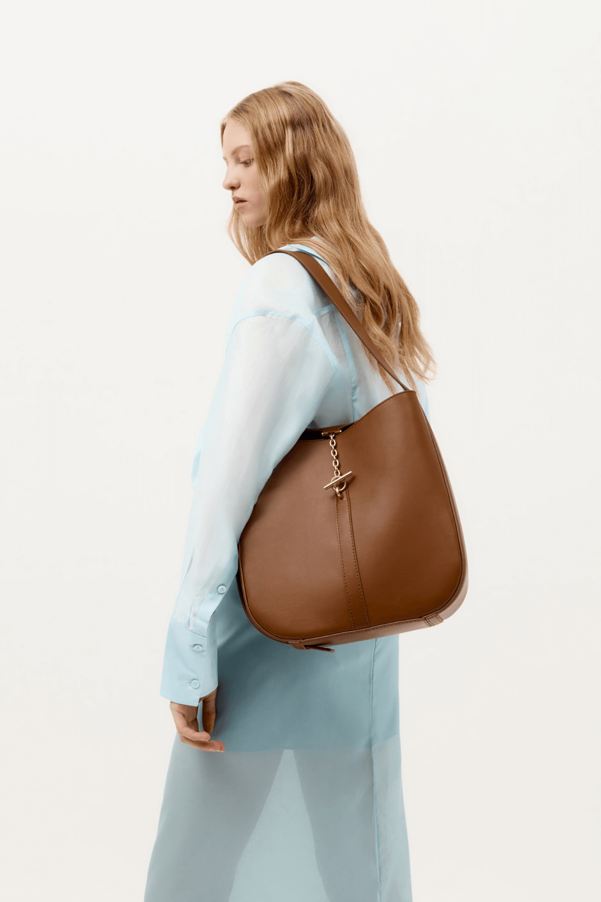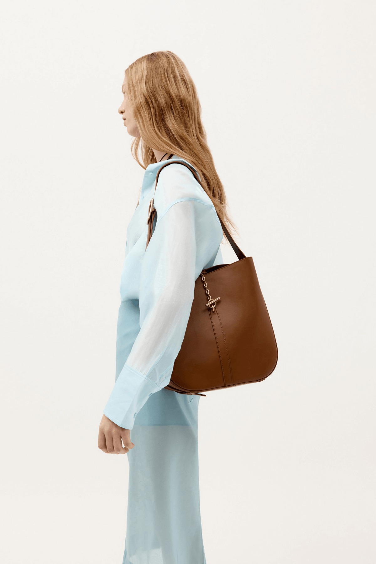 Crafted from structured Calf Nappa leather with signature brass detailing.