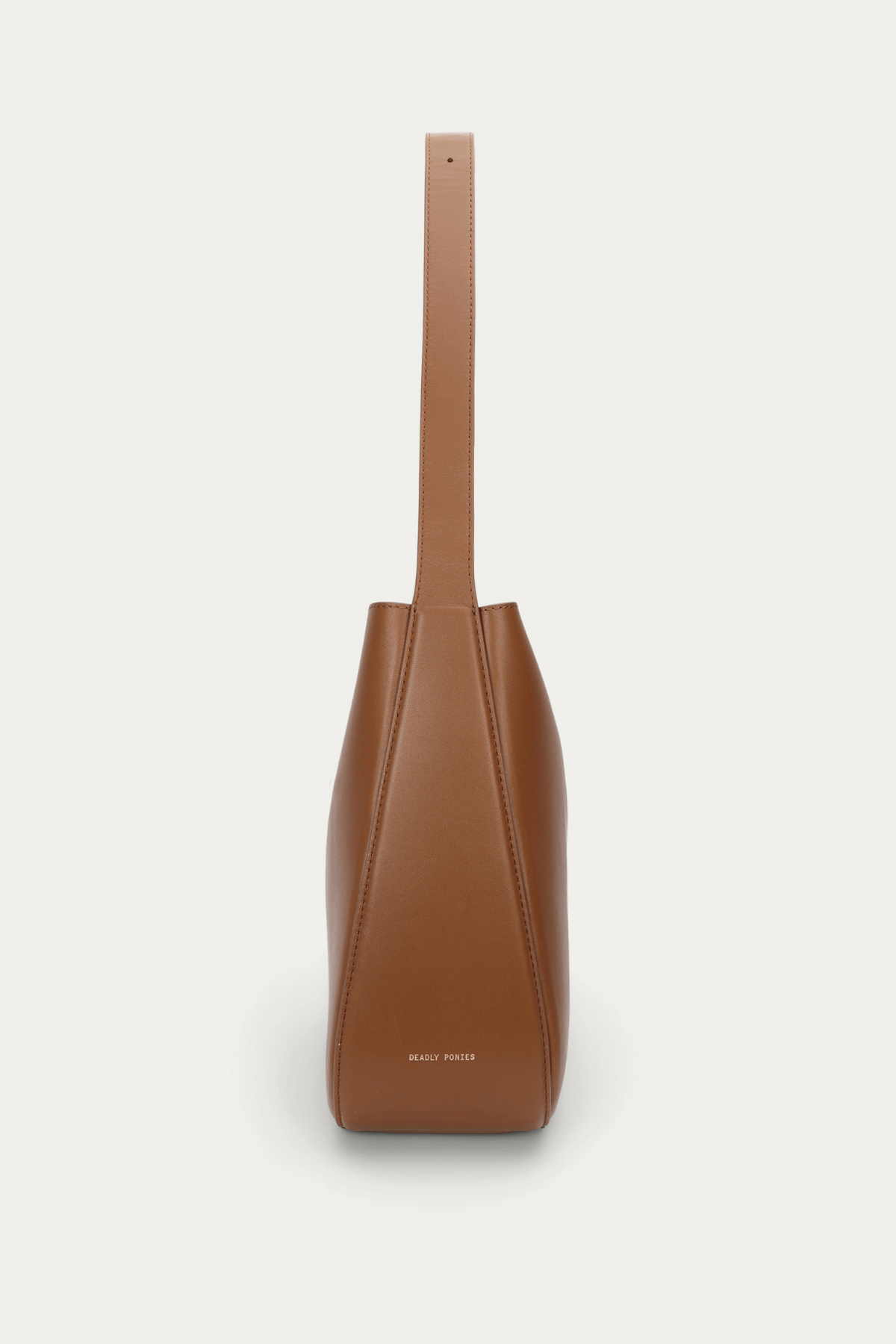 The Mr Foldabit tote in Driftwood by Deadly Ponies combines structure and versatility with Calf Nappa leather, chain T-bar closure, adjustable strap, suede interior, and a removable zip pouch for organised storage. A detachable zip pouch adds practicality, making it a versatile companion for day-to-night use.