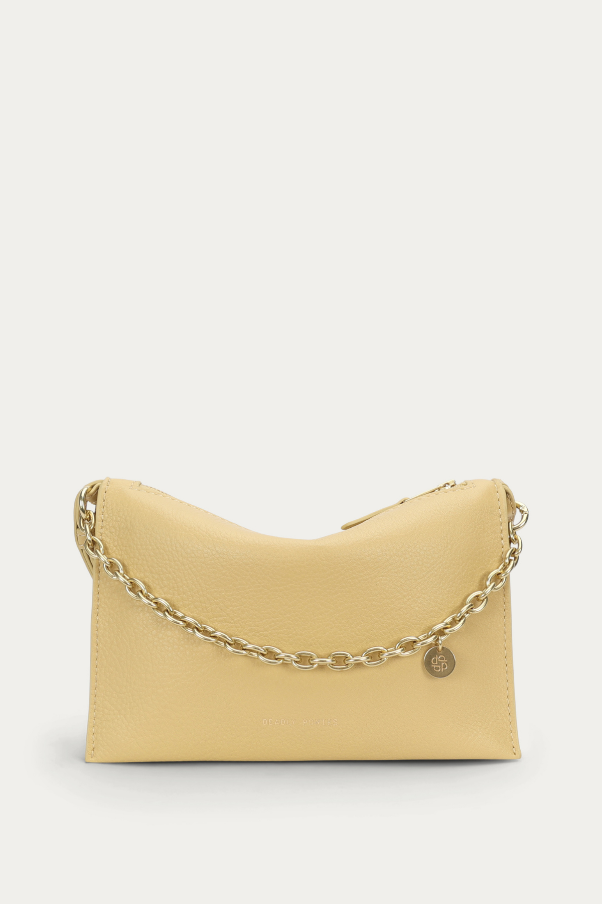 Mr Minimese in Straw Calf Nappa by Deadly Ponies is a sleek, compact double-gusset clutch. With a fixed adjustable strap and optional brass Minimese Chain, it offers versatile crossbody or shoulder styling for effortless day-to-night wear.