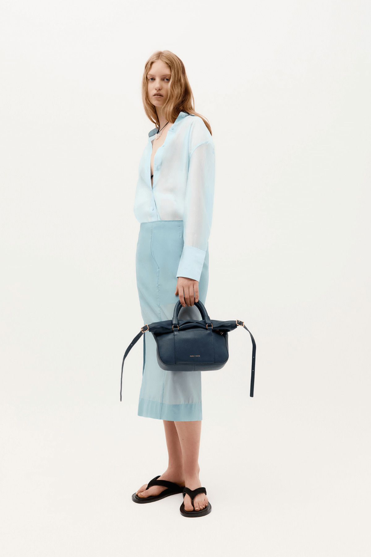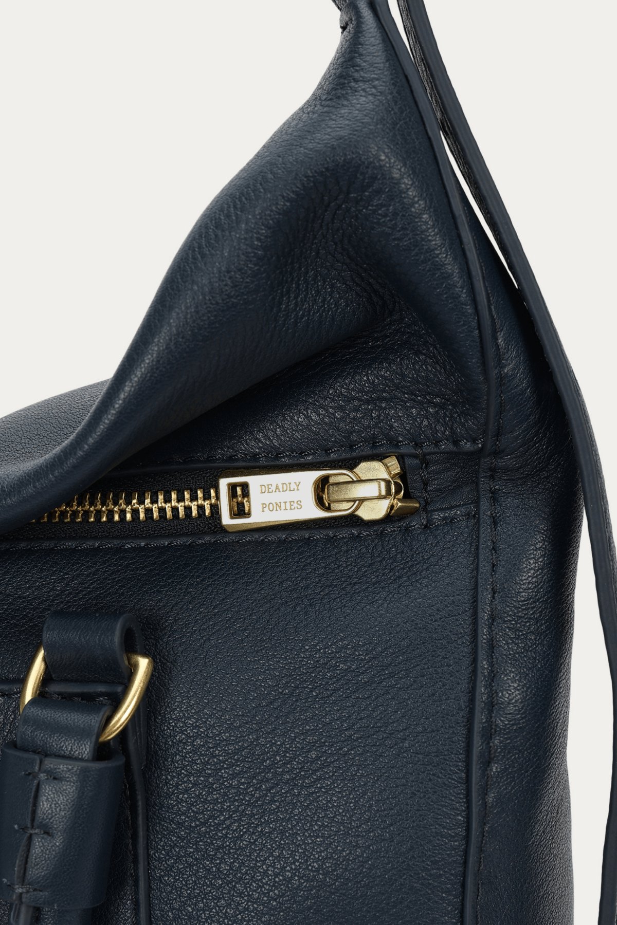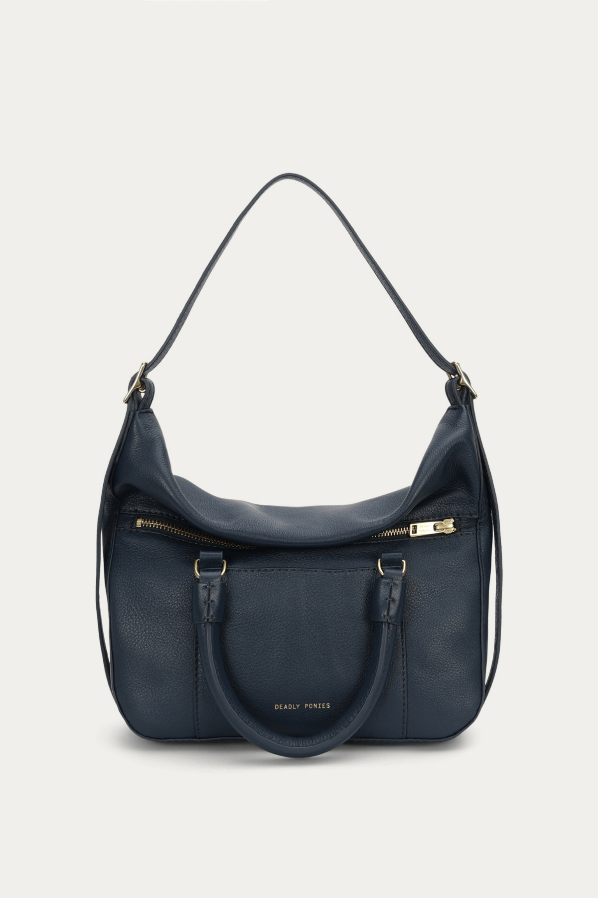 The Mr Miro Mini in Ink by Deadly Ponies is a versatile Calf Nappa bag with dual rope handles, adjustable strap, zip closure, and multiple internal pockets. Its structured yet flexible design allows styling as a handheld or shoulder bag, making it ideal for everyday use.