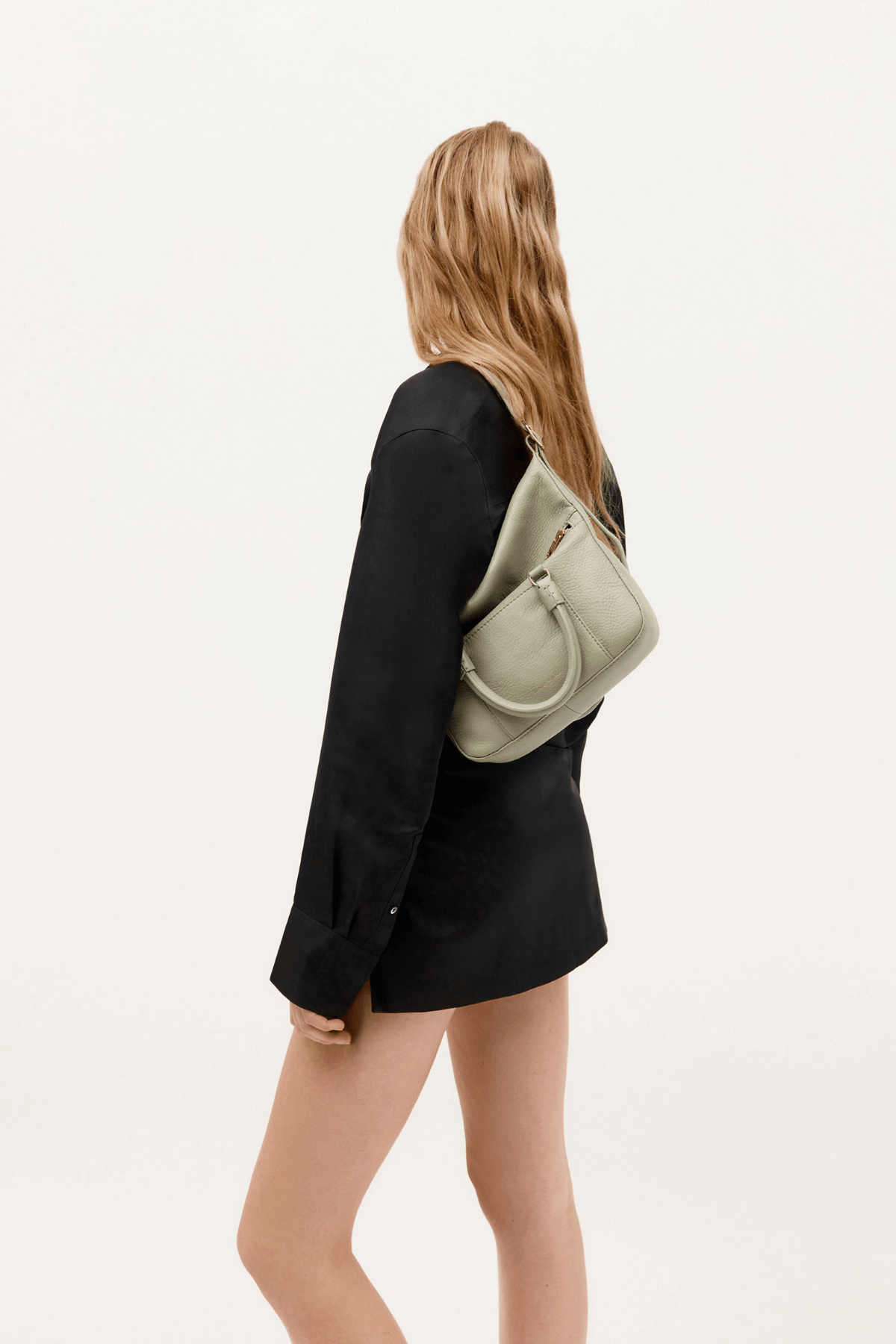 The Mr Miro Mini in Kina by Deadly Ponies is a versatile Calf Nappa bag with dual rope handles, adjustable strap, zip closure, and multiple internal pockets. Its structured yet flexible design allows styling as a handheld or shoulder bag, making it ideal for everyday use.