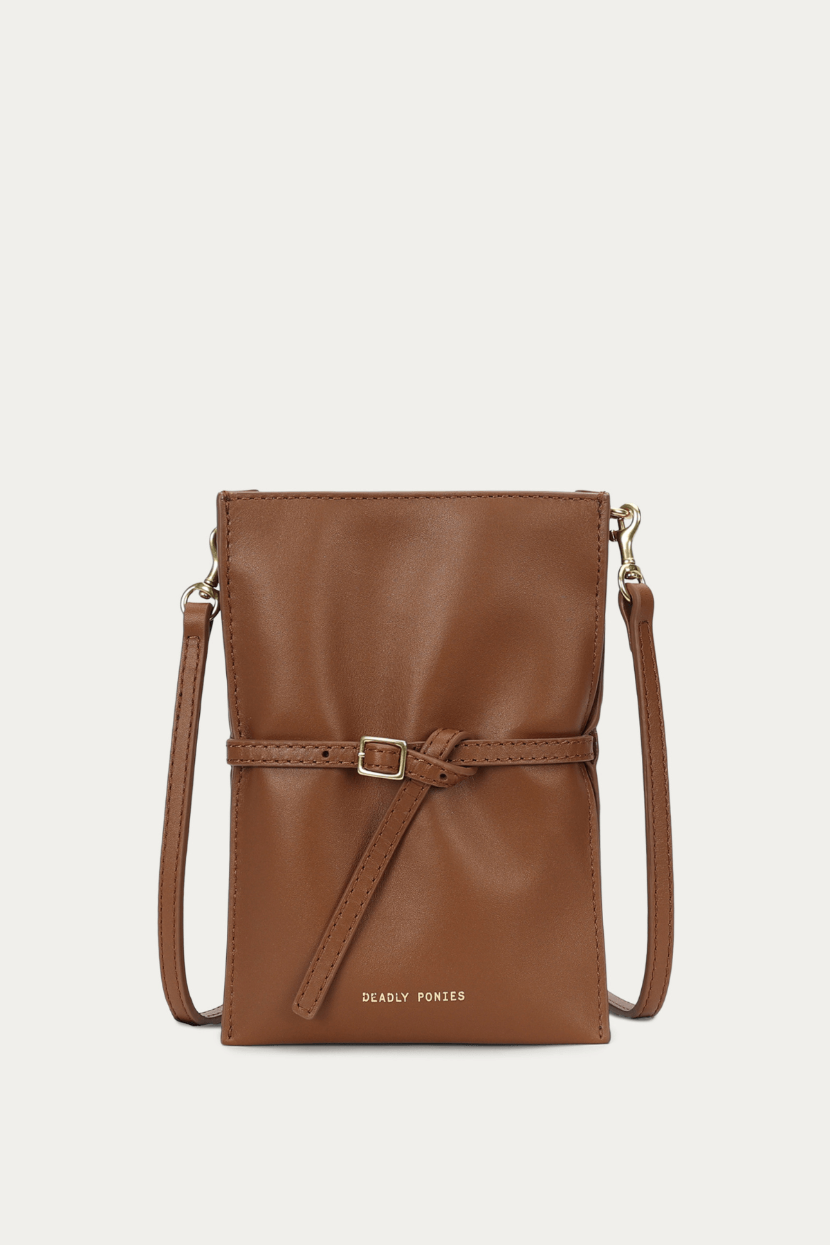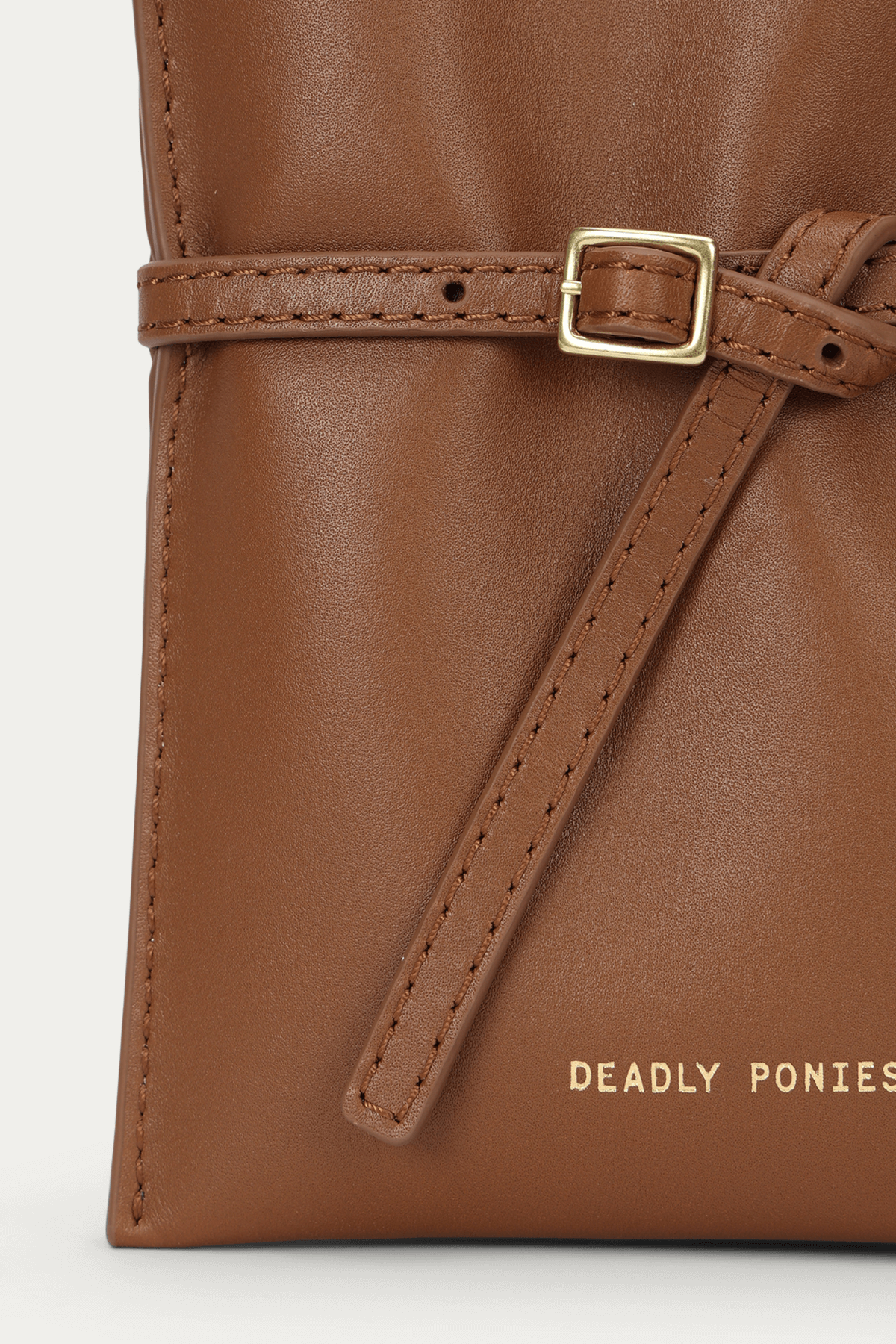 The Mr Penny Pouchette in Driftwood by Deadly Ponies blends soft Ironed Calf Nappa with brass hardware and buckle detailing - perfect as a compact crossbody or refined clutch. Compact yet practical, it easily transitions from casual to occasion wear.