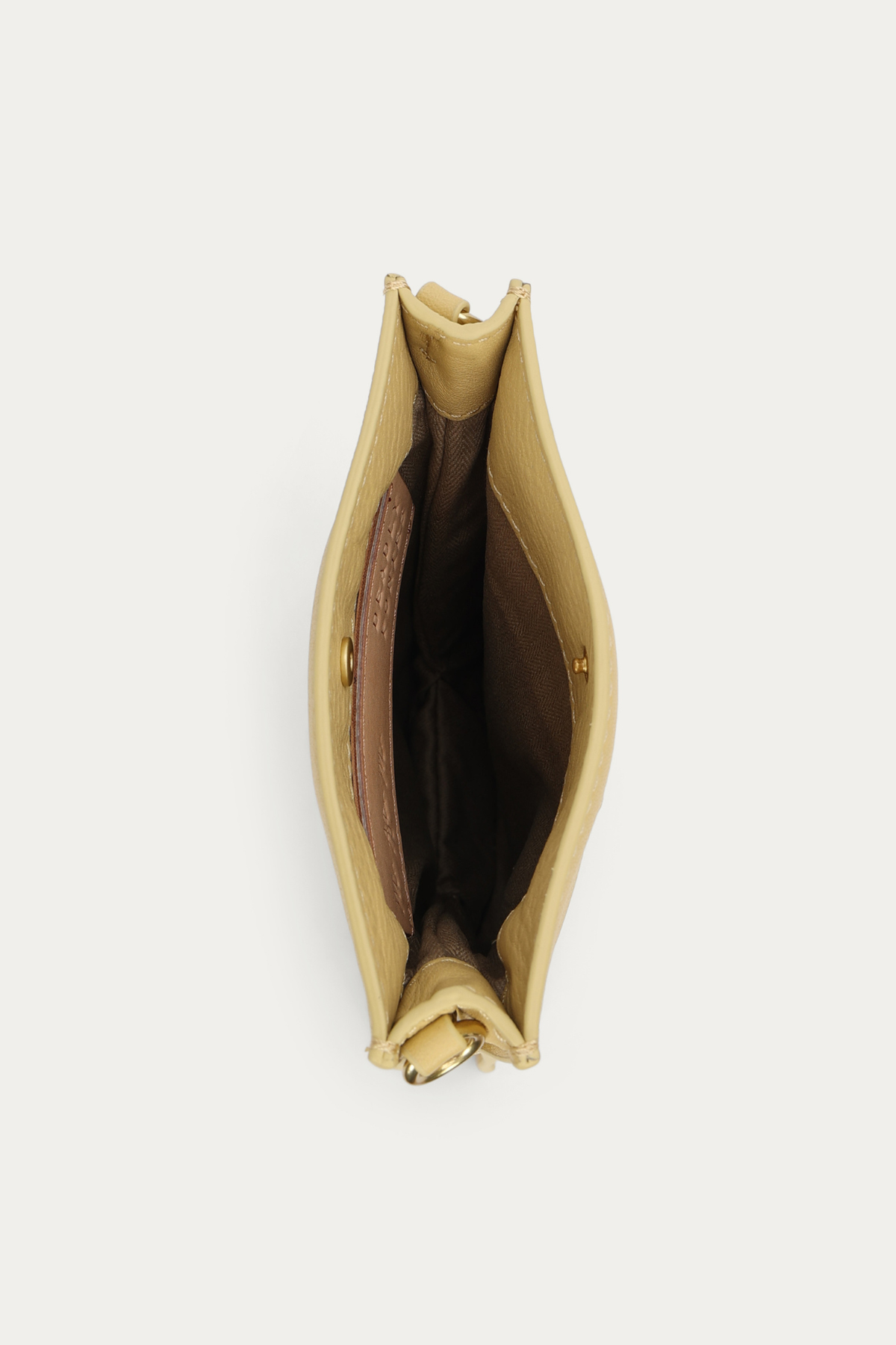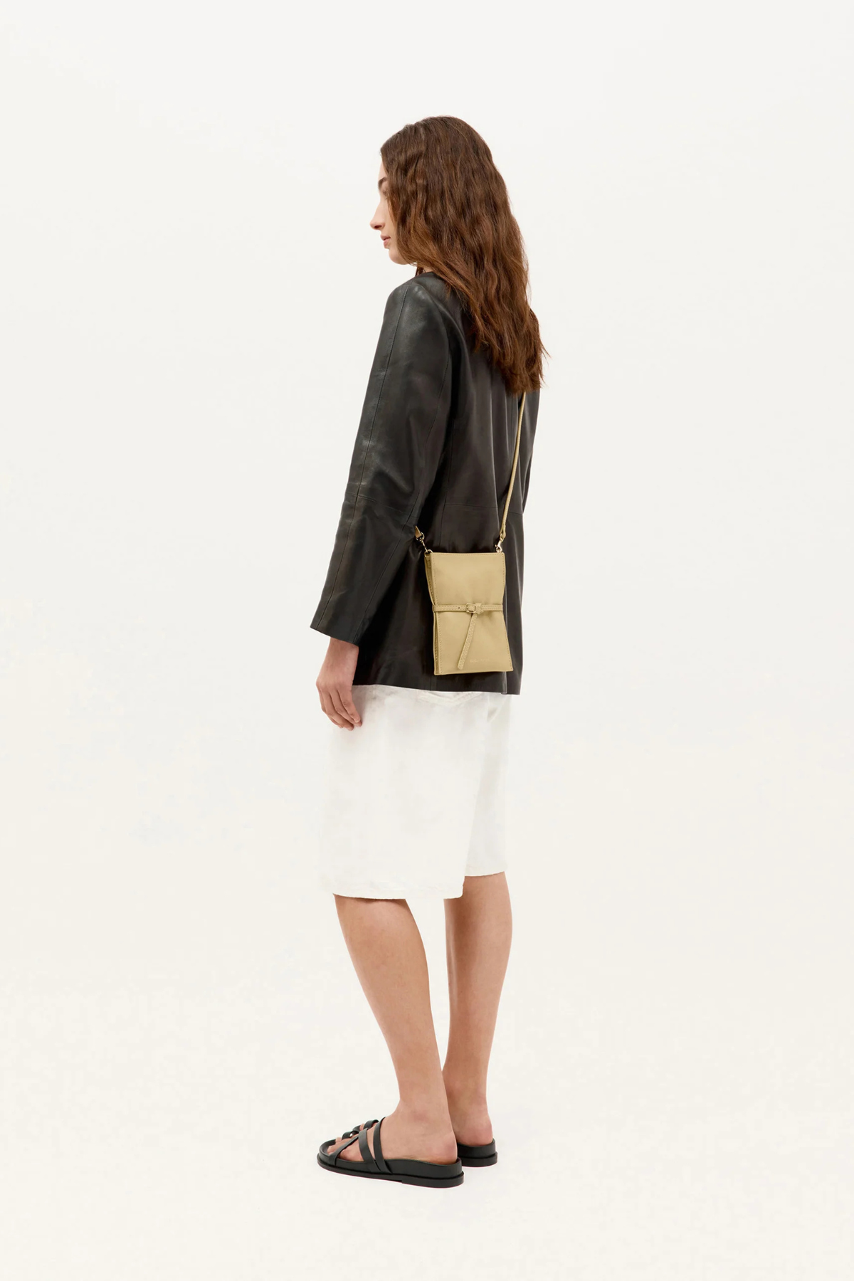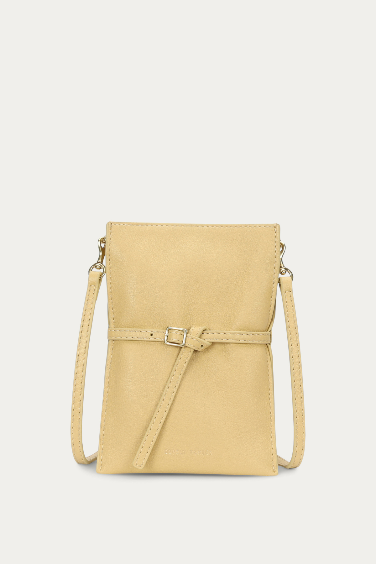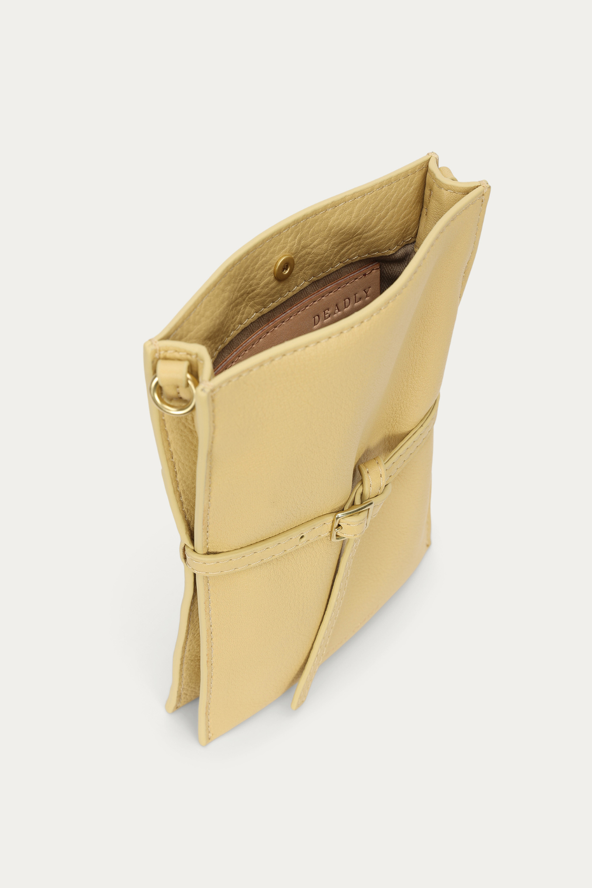 The Mr Penny Pouchette in Straw by Deadly Ponies is a compact leather bag in soft Calf Nappa, complete with a front buckle, back slip pocket, and detachable strap for versatile wear. Perfect for casual outings or evening events.