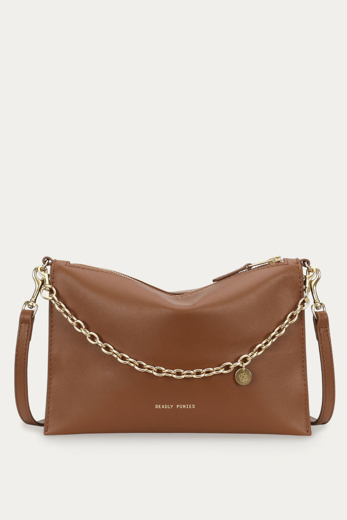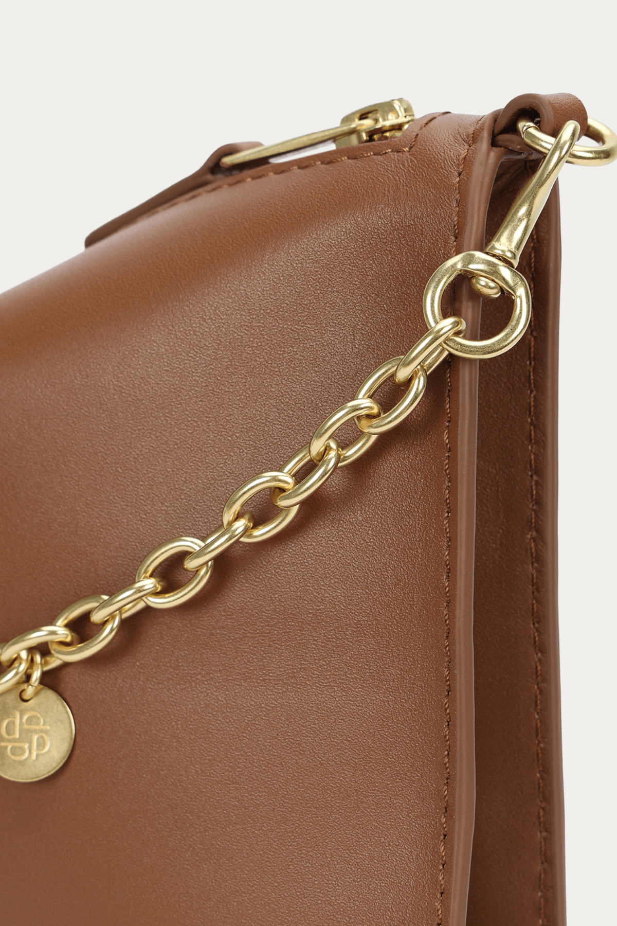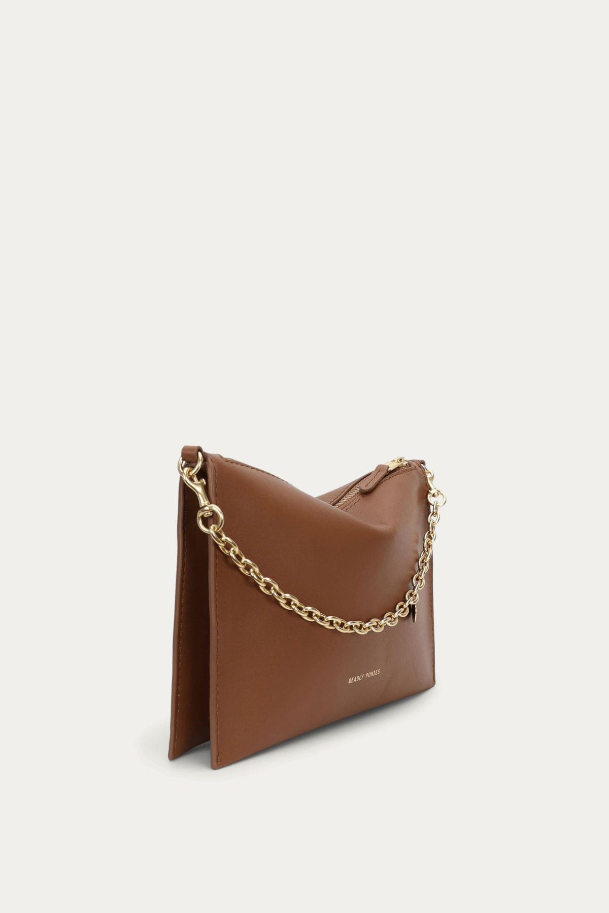 Crafted from smooth Ironed Calf Nappa, the Mr Minimese in Driftwood features a refined folded design, dual gussets, and a brass chain for versatile crossbody or shoulder styling. Keeps essentials close for day-to-night wear.