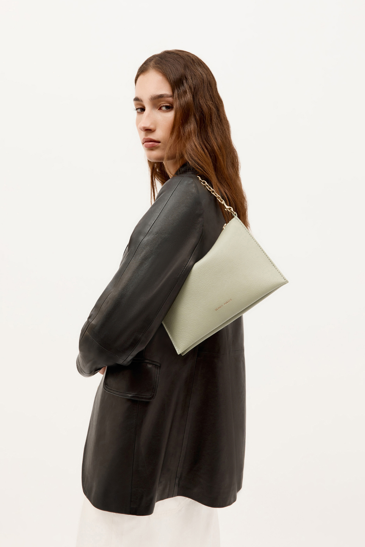 A modern classic from Deadly Ponies, Mr Siamese in Kina combines elegant minimalism with functional design. Its single-piece Calf Nappa construction creates a sleek profile, while the detachable brass chain and adjustable strap offer multiple styling options. Perfect for day-to-night transitions, it balances refined sophistication with everyday practicality.