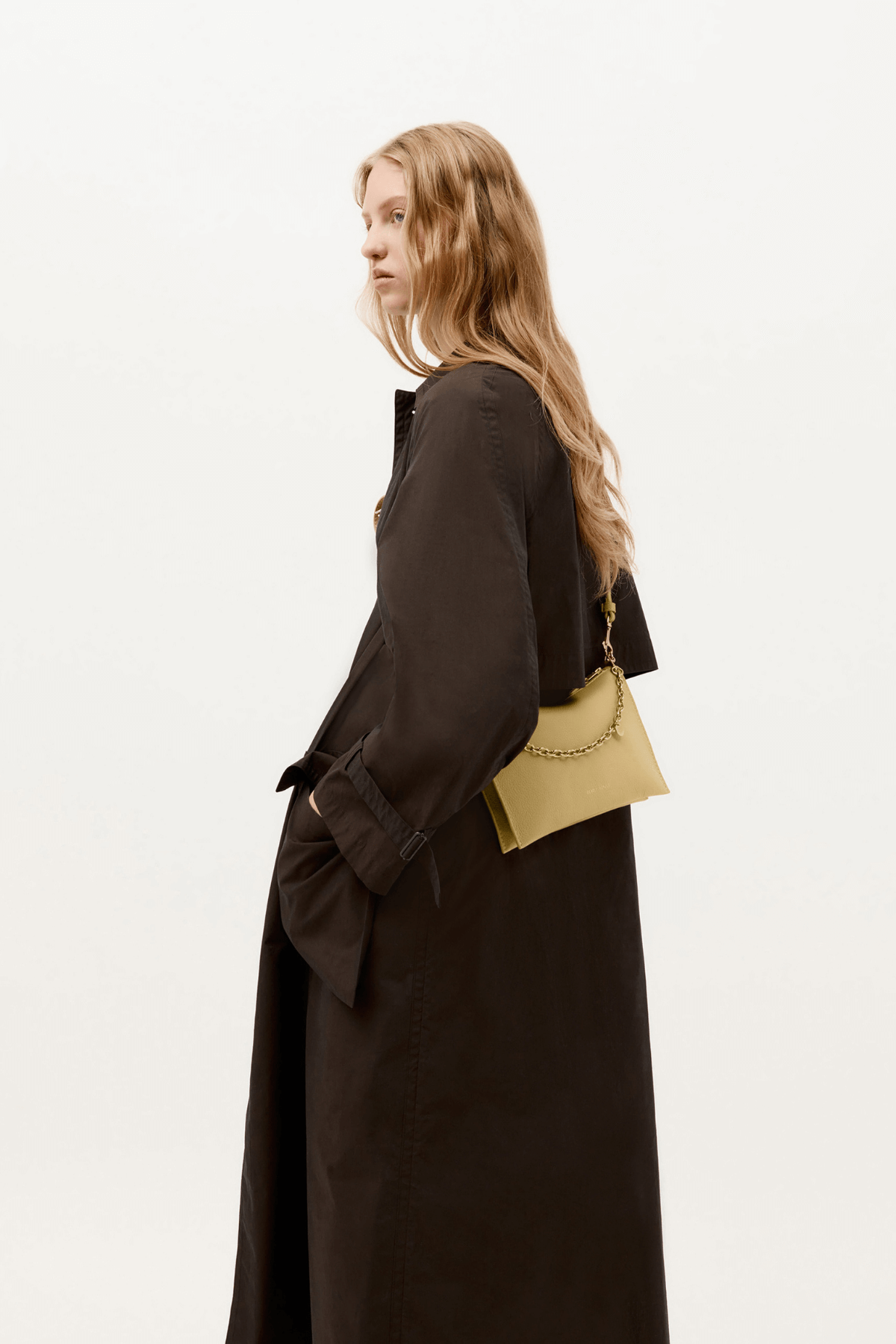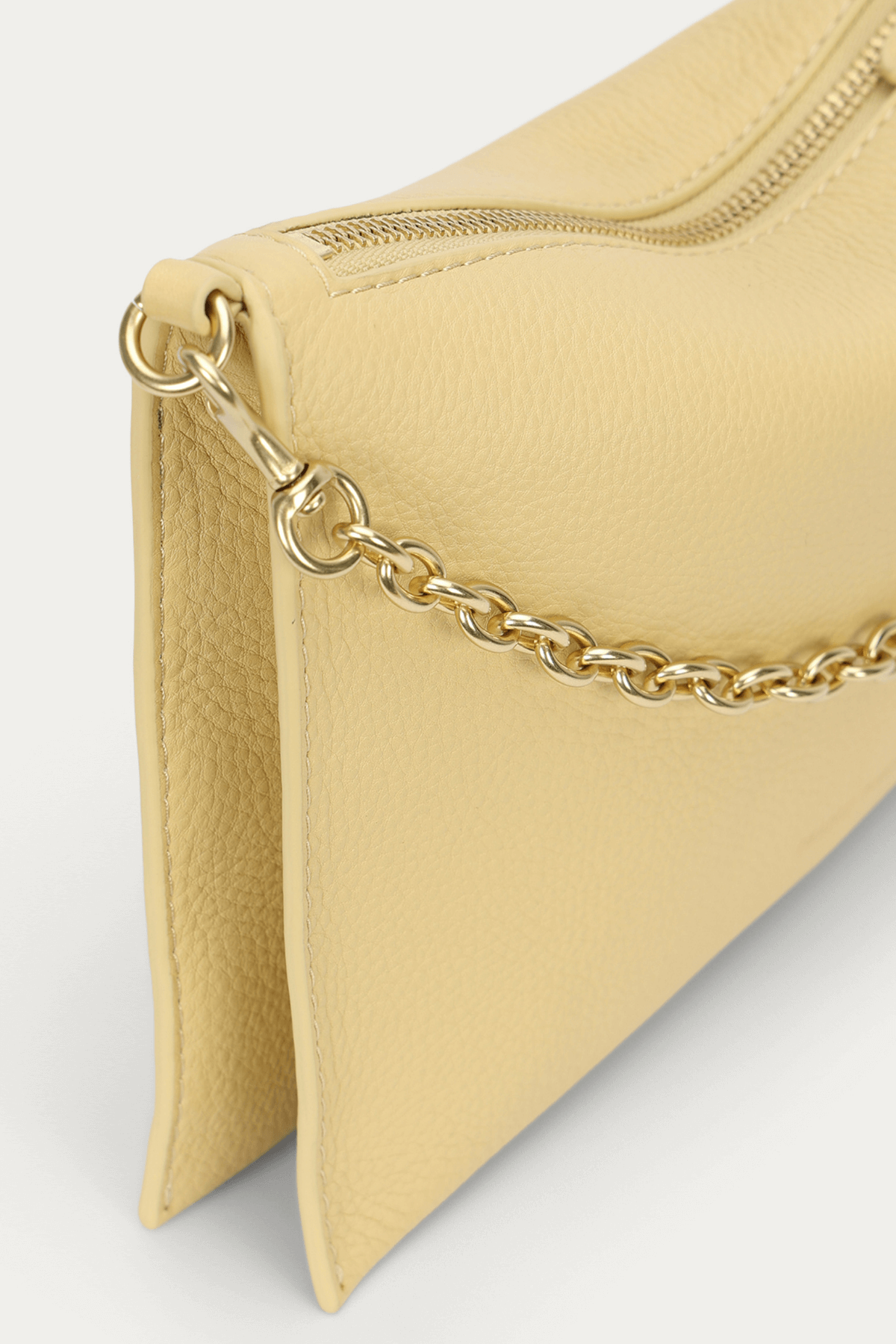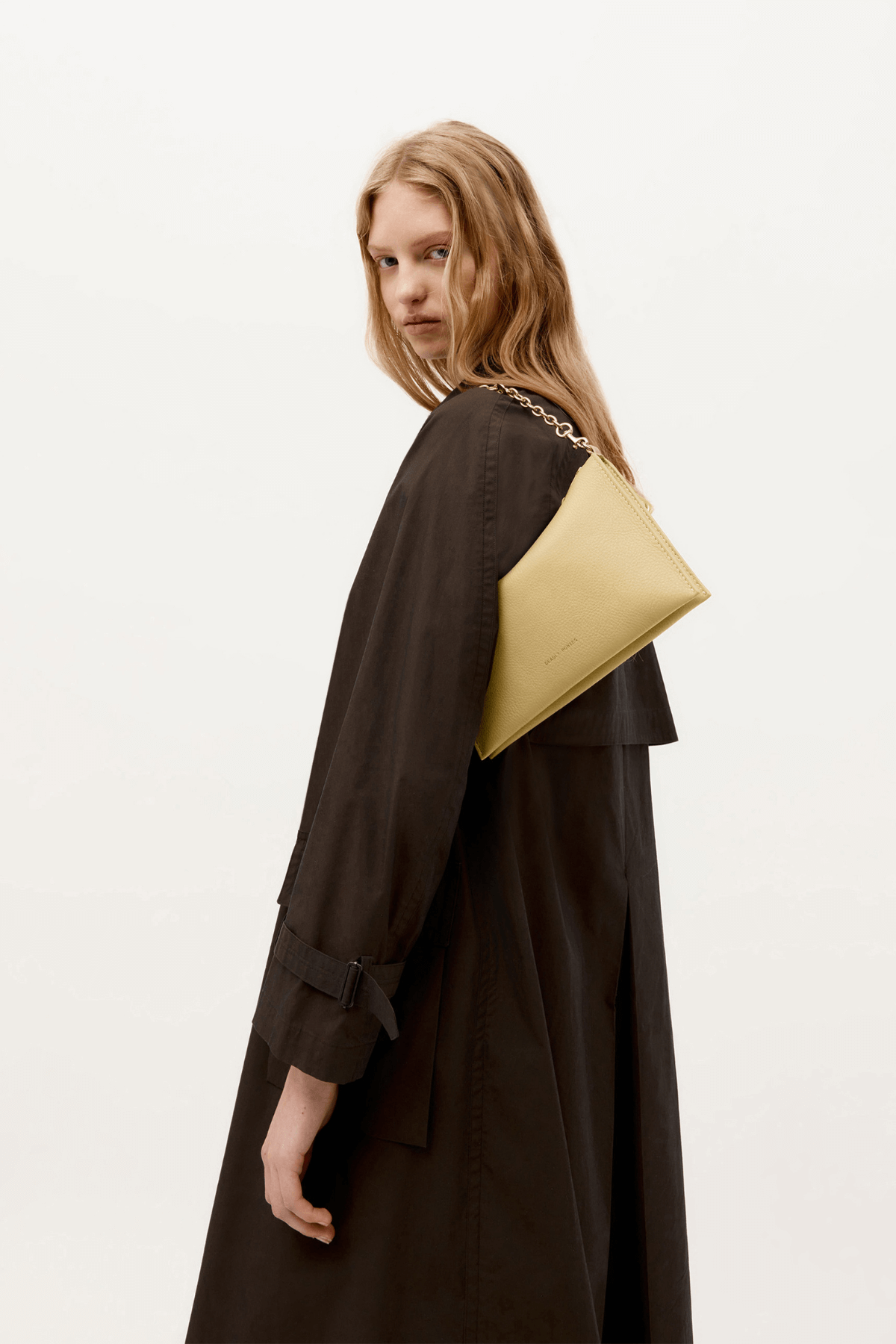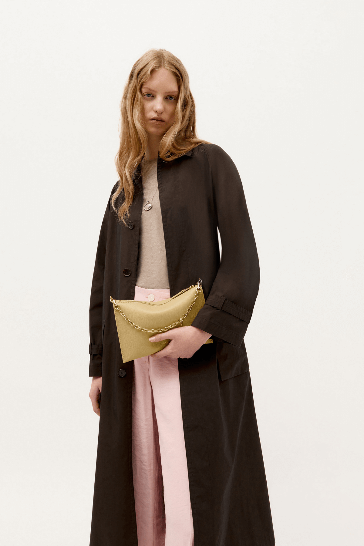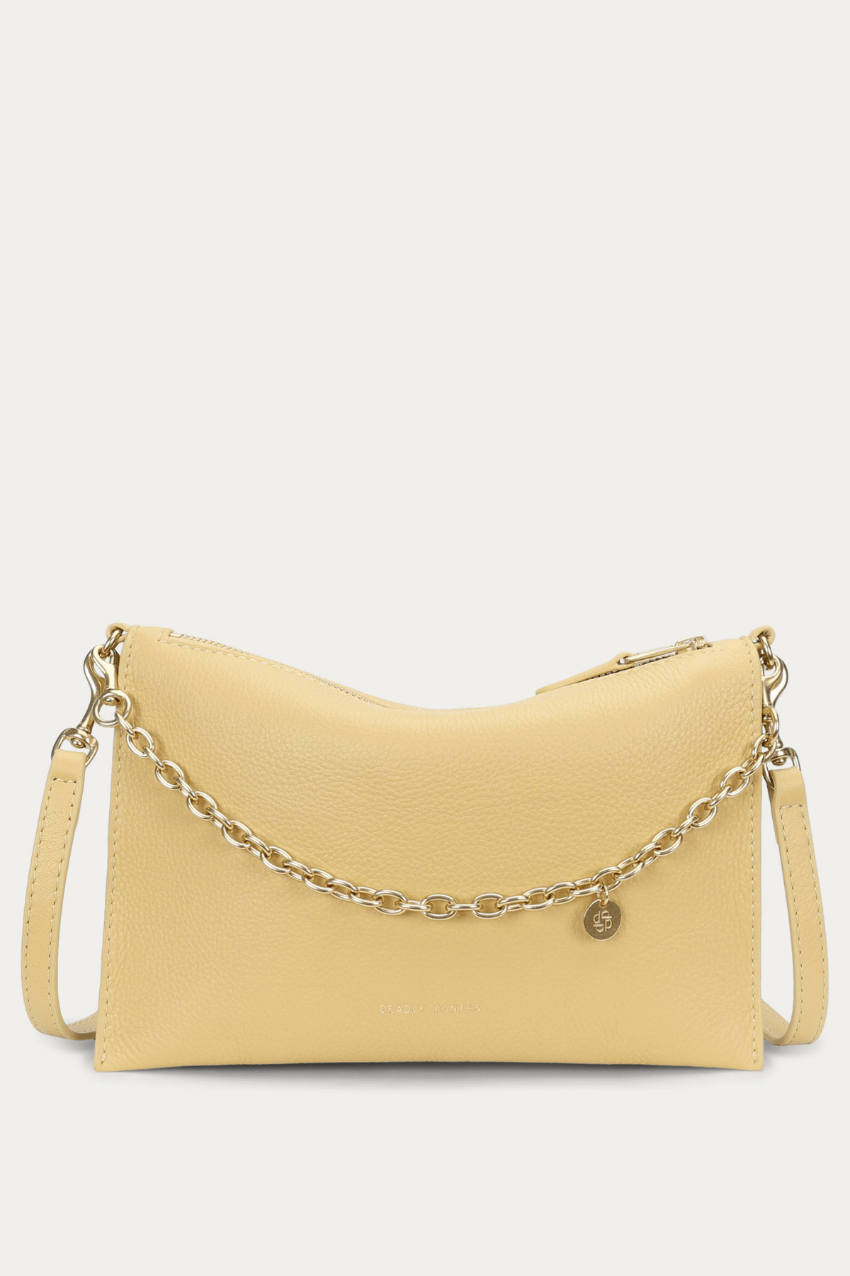A modern classic from Deadly Ponies, Mr Siamese in Straw combines elegant minimalism with functional design. Its single-piece Calf Nappa construction creates a sleek profile, while the detachable brass chain and adjustable strap offer multiple styling options. Perfect for day-to-night transitions, it balances refined sophistication with everyday practicality.