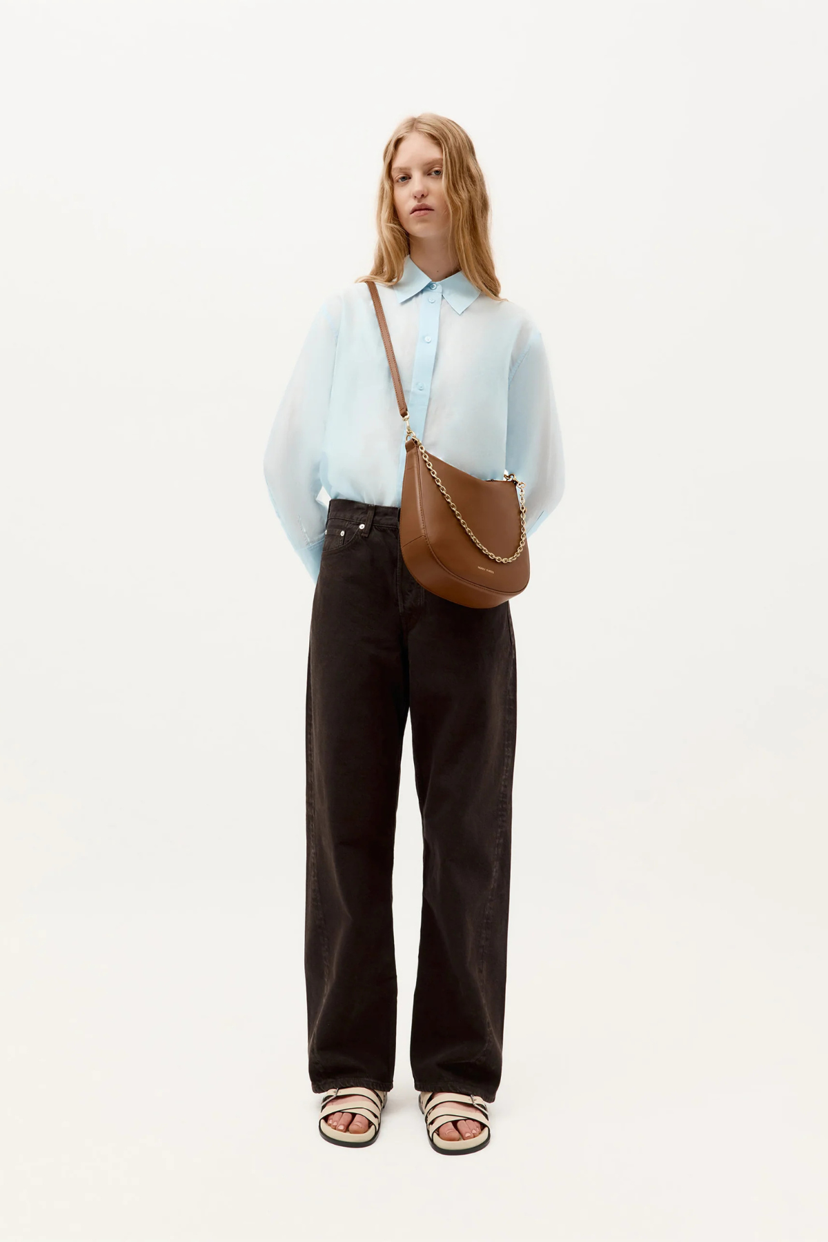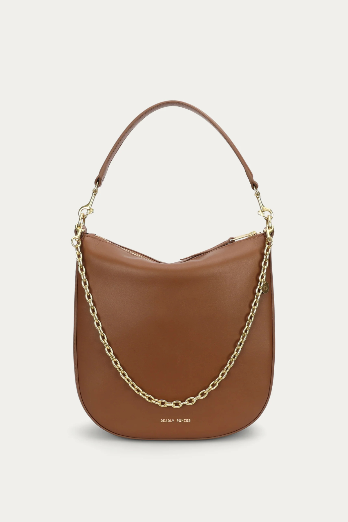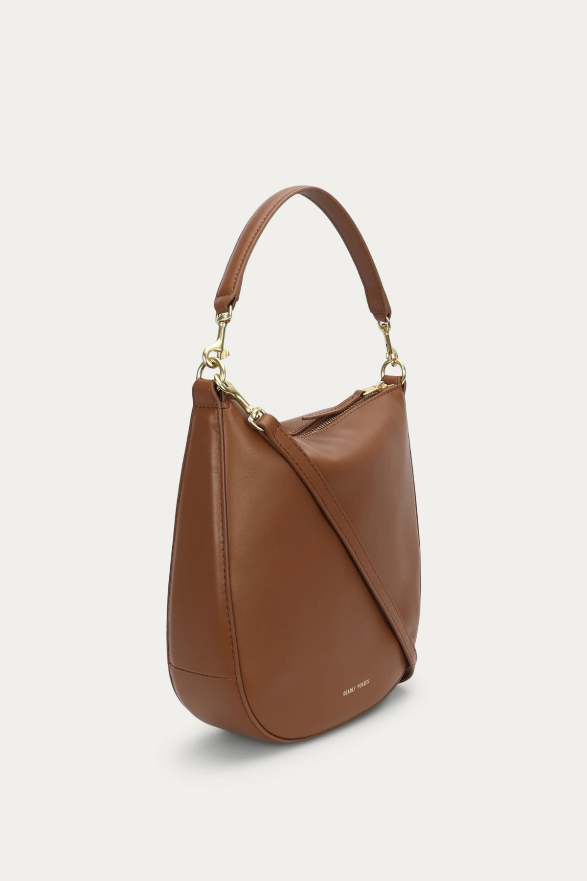 Mr Sling in Driftwood by Deadly Ponies offers sculptural elegance and versatility, crafted from Ironed Calf Nappa with detachable straps and refined brass details for timeless everyday sophistication.