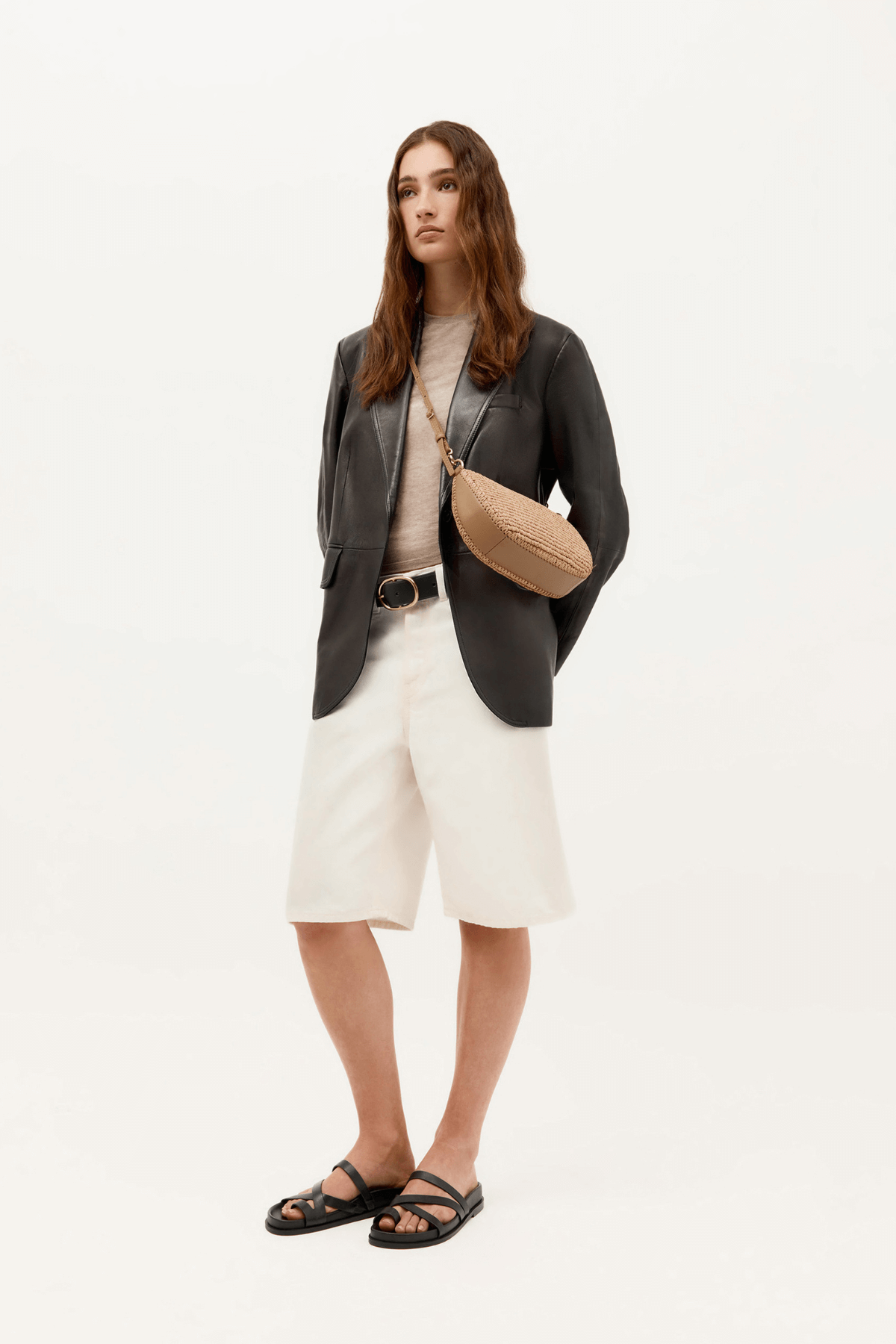 Woven Raffia fibre with Ironed Calf Nappa trim and brass hardware.