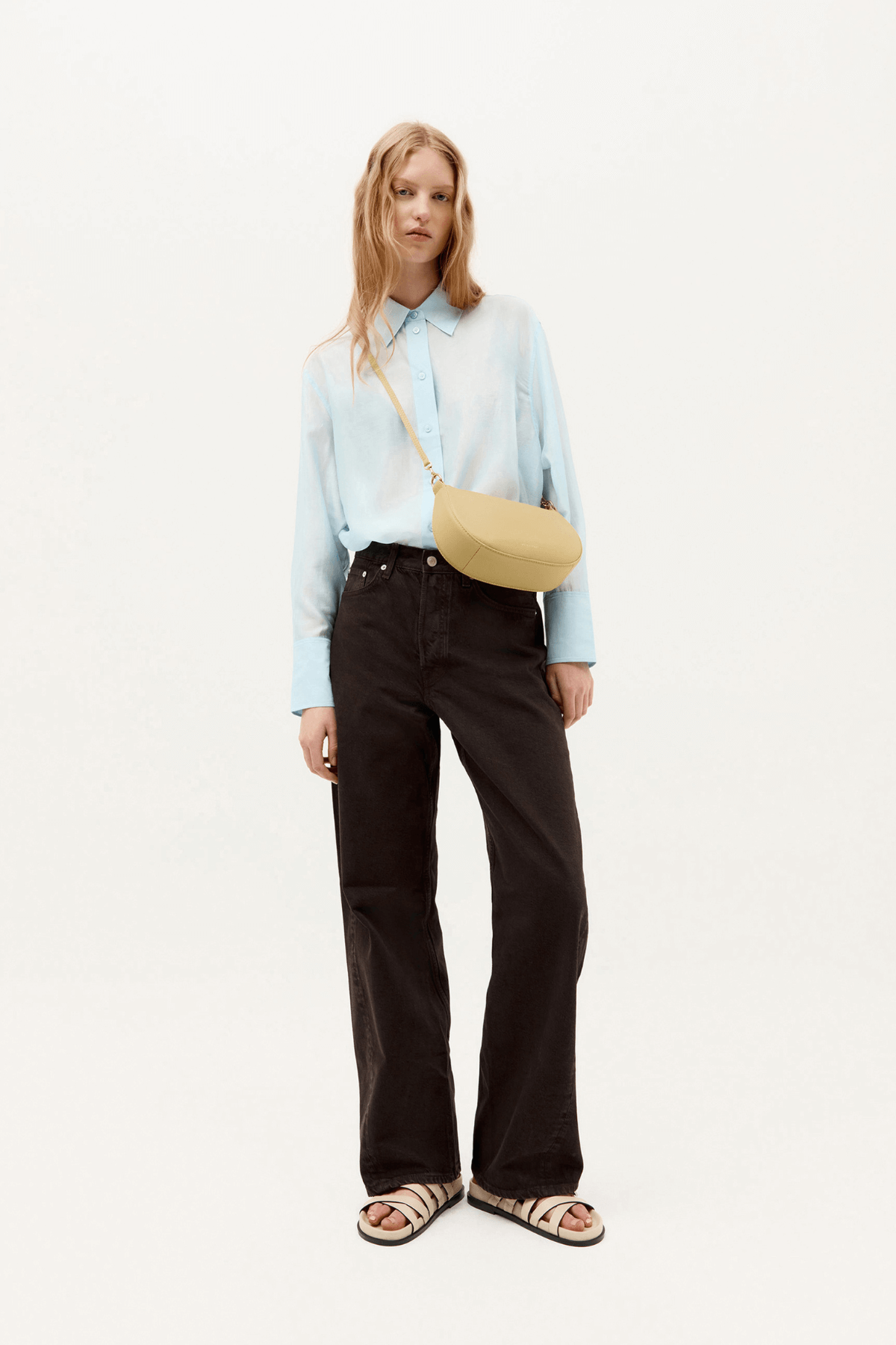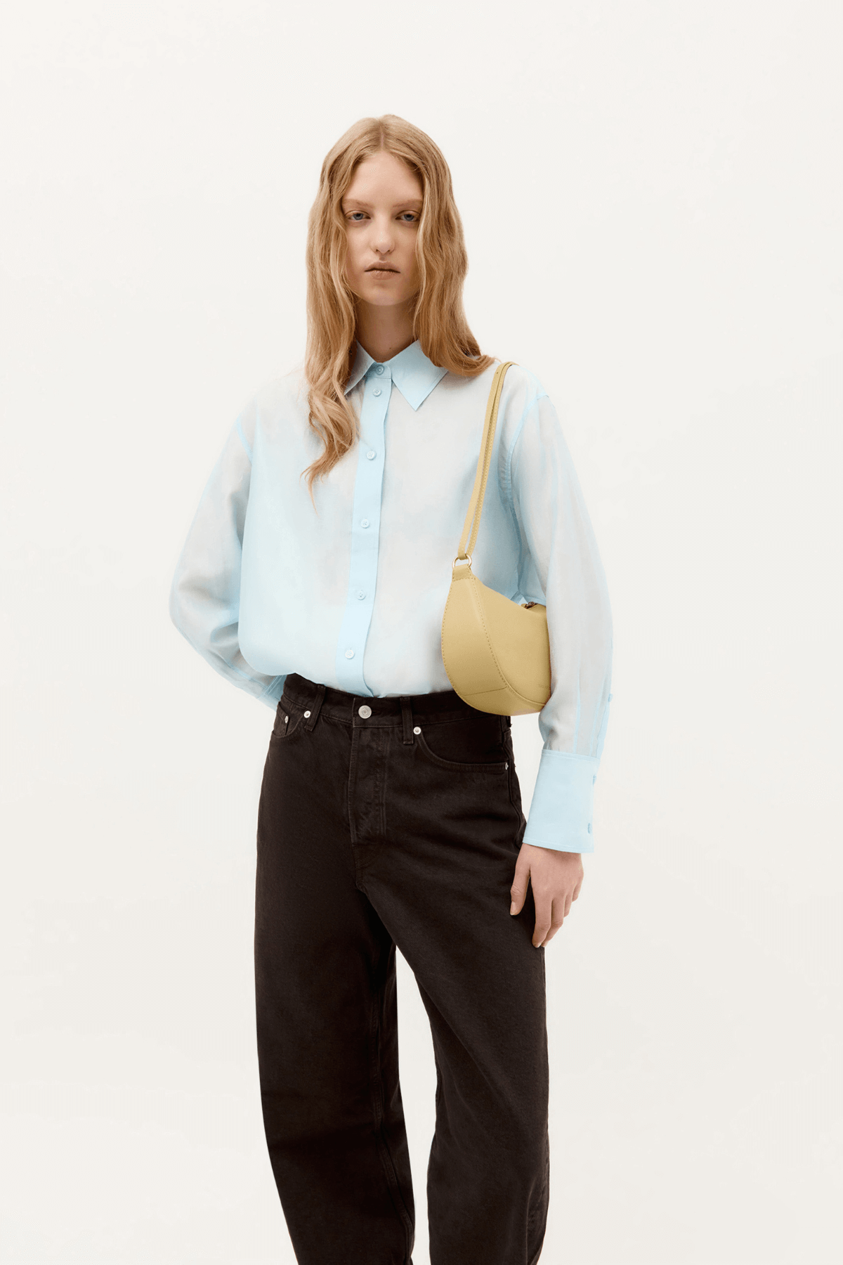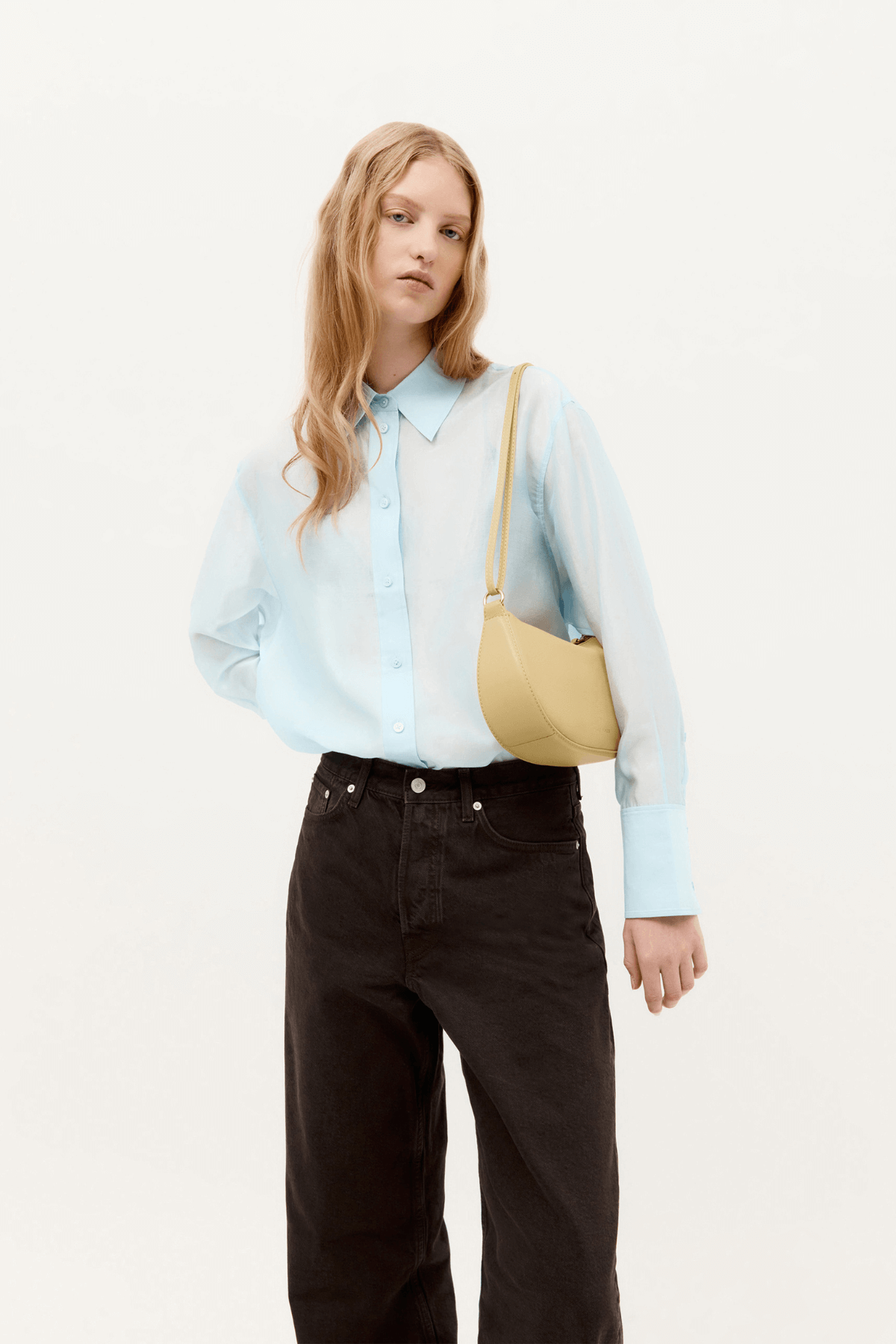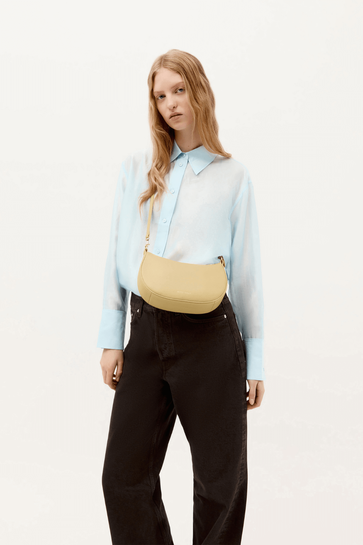 The Mr Sling Micro bag in Straw by Deadly Ponies is a petite, versatile Calf Nappa design with internal slip and zip pockets. Detachable top handle and adjustable strap allow shoulder or crossbody wear. The gold foil logo embossment adds a subtle signature detail.