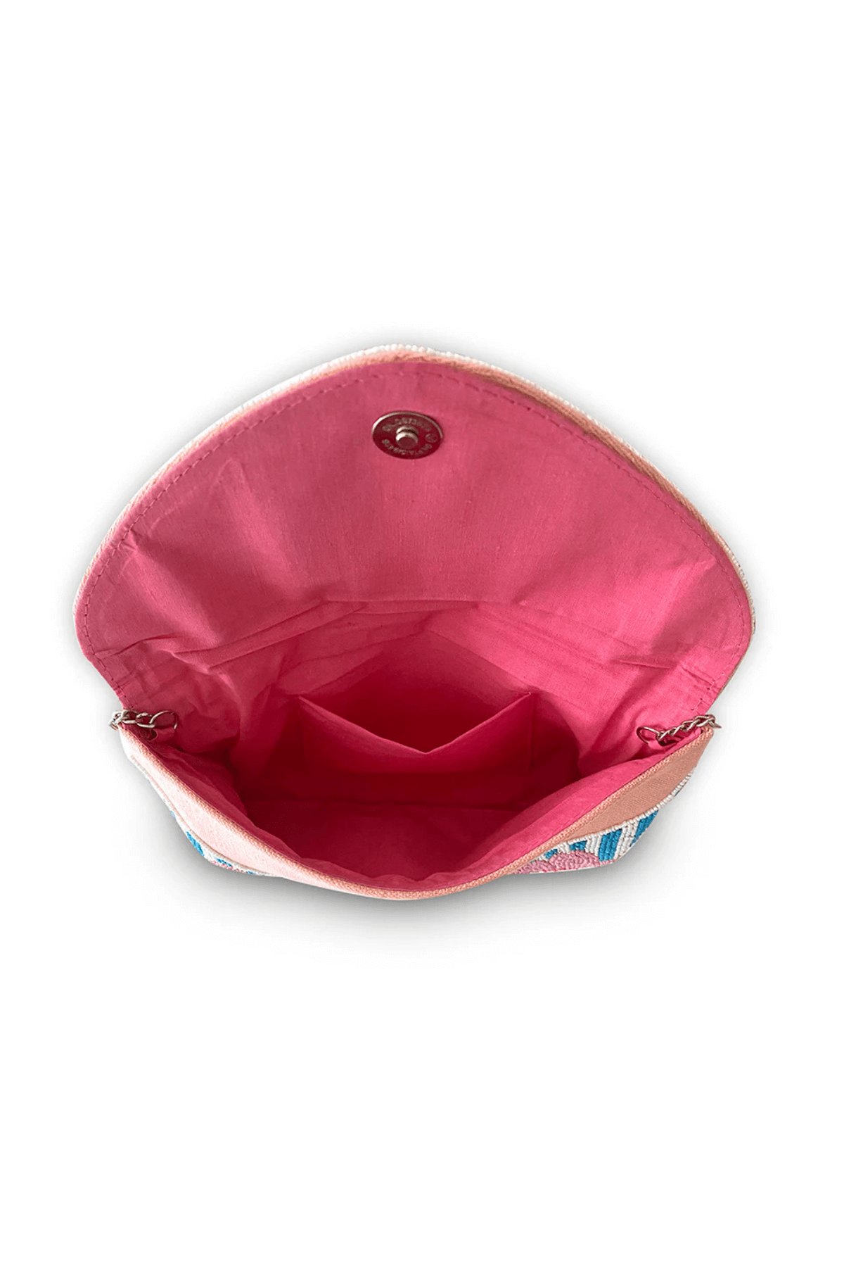 Intricately hand-beaded, the Petite Fleur Bag adds fun, colour, and texture to your look. Switch from a chic clutch to a practical shoulder bag with the hidden chain strap. Ideal for weddings, long lunches, and summer celebrations where a pop of personality completes your outfit.