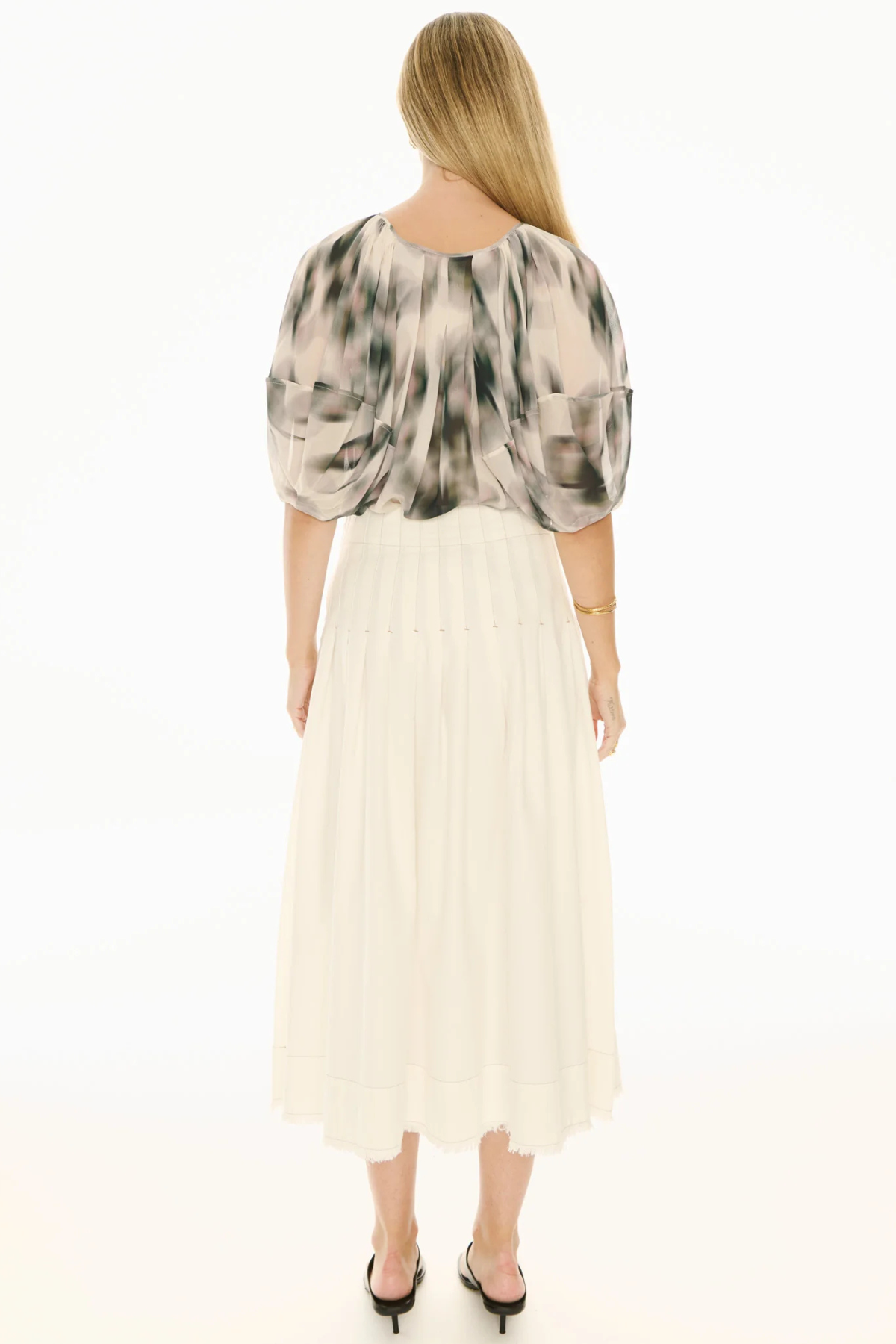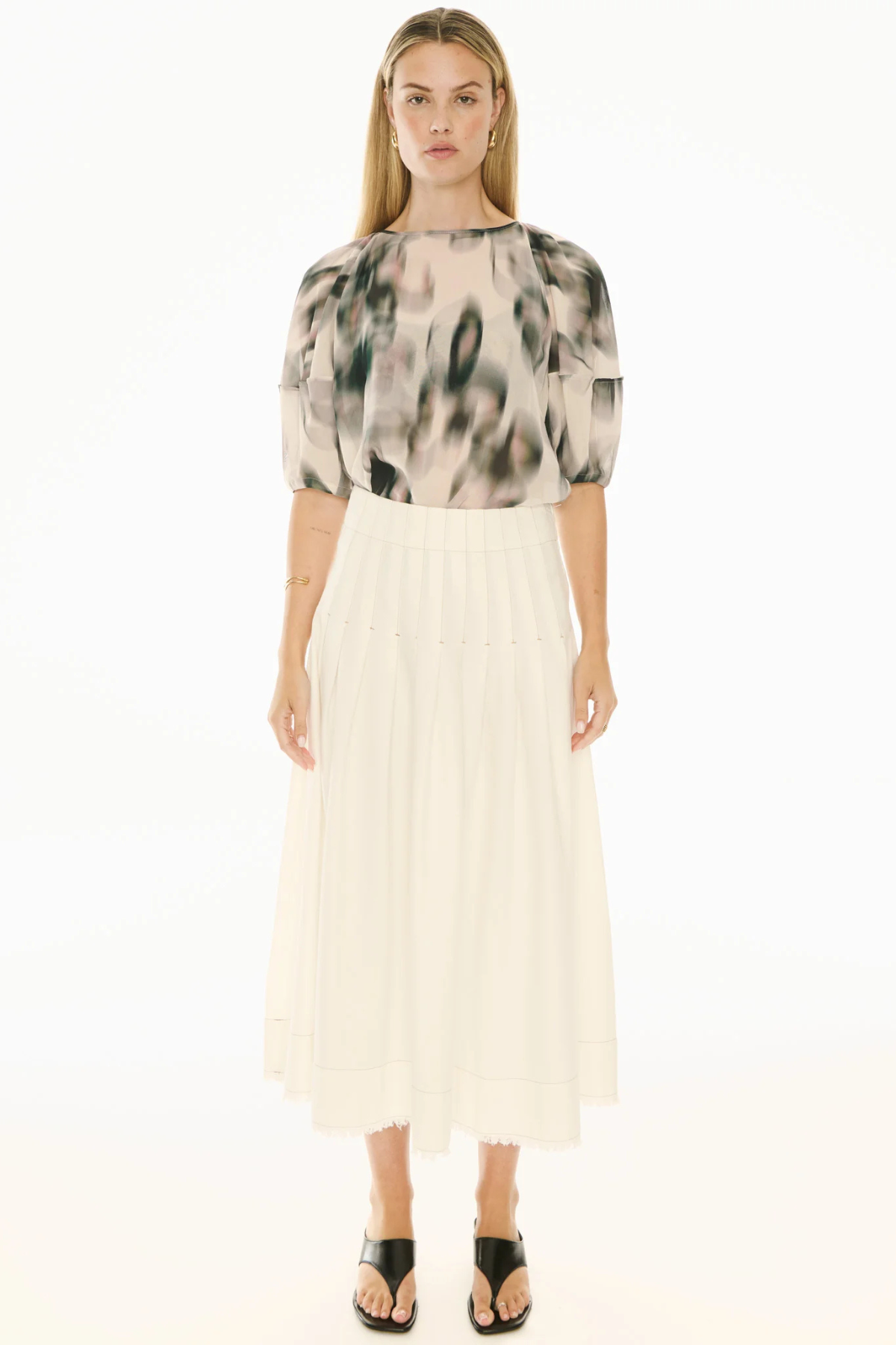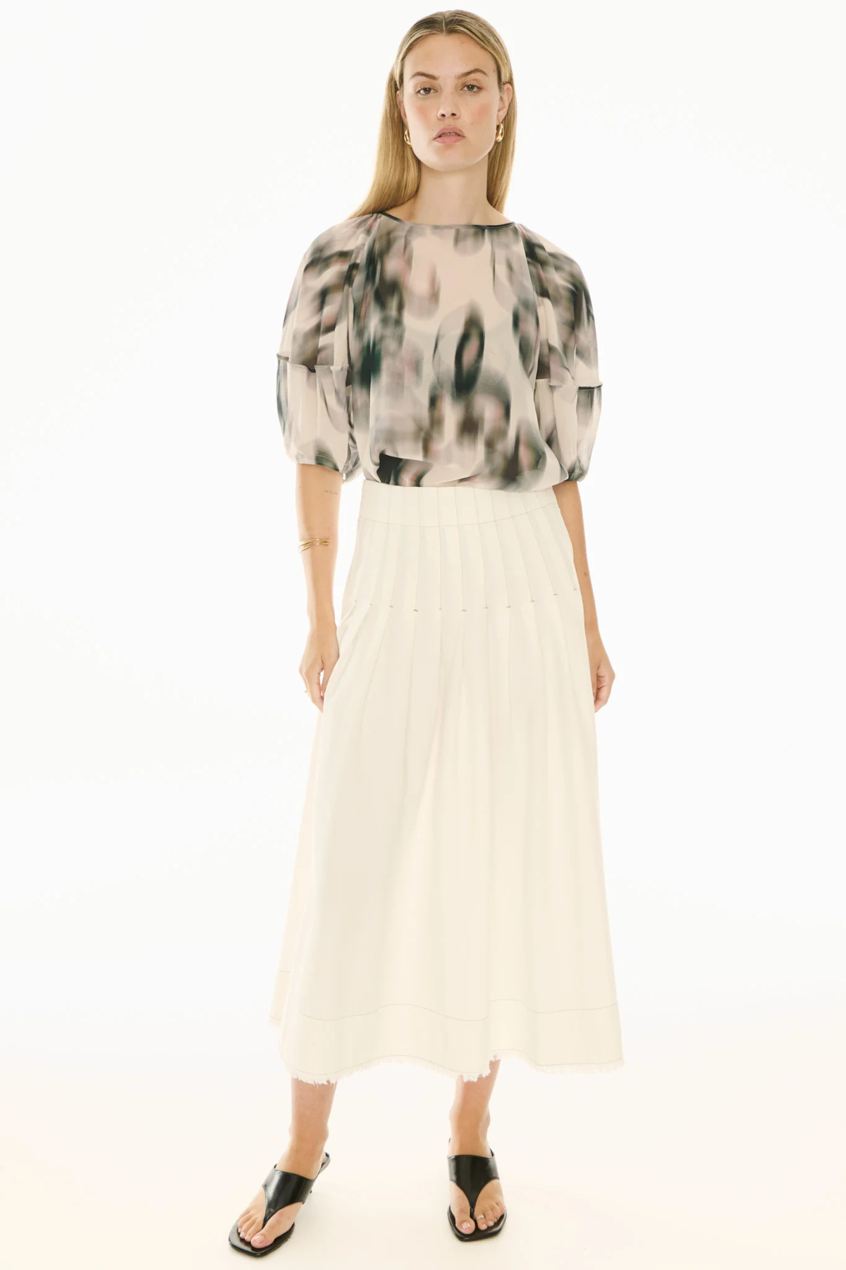 The Elise Top in Print by Pol pairs a sheer blurred floral georgette with soft draping and a relaxed fit, creating a light, elegant layer ideal for warm days and elevated everyday outfits.