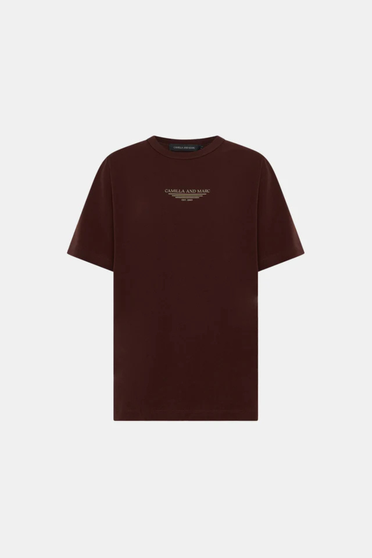 The Camilla and Marc Janice Logo Tee in Chocolate Brown is a relaxed cotton tee with ribbed crew neck, printed plastisol artwork, and anti-fluff finish. Ideal for layering under jackets or wearing solo for relaxed weekend style, whether in Christchurch or anywhere across New Zealand.
