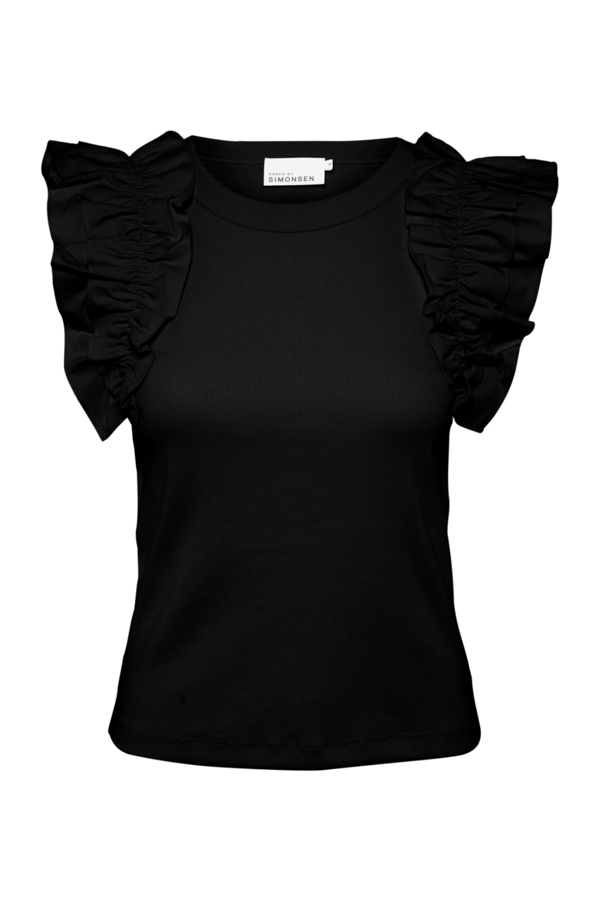 The Oda Tank in Meteorite brings a feminine twist to a wardrobe essential. Crafted from 96% cotton and 4% elastane, it offers a soft, stretchy fit that feels comfortable all day. The delicate ruffles on the shoulders add a playful, stylish detail, elevating a classic ribbed tank.
