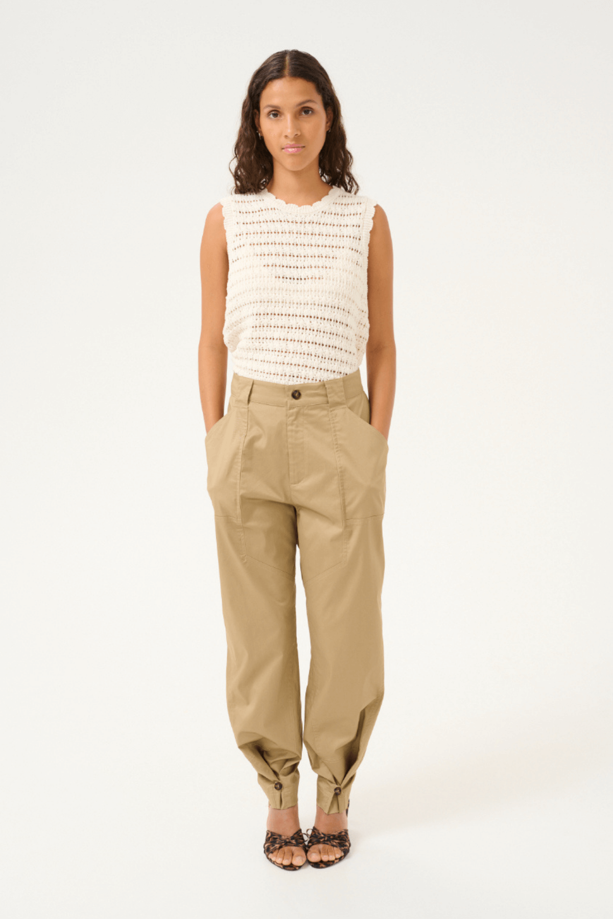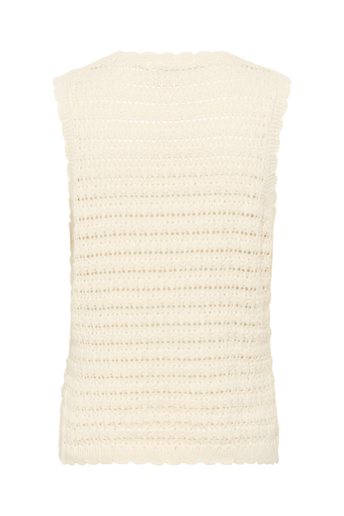 The Venus sleeveless crochet top by Karen by Simonsen brings a delicate, airy touch to your summer wardrobe. Crafted in 100% soft cotton, the openwork texture allows breathability while the scalloped hem and arm openings add subtle femininity. Its straight, oversized silhouette drapes effortlessly, making it ideal for pairing with skirts, shorts, or jeans.