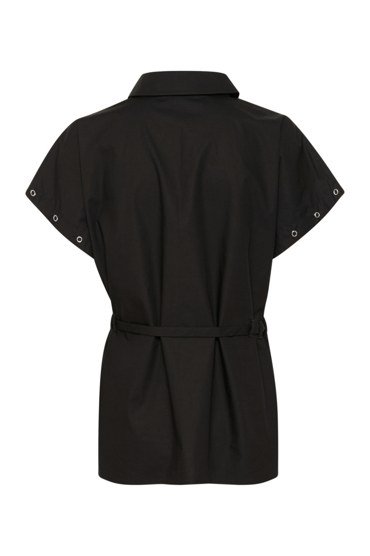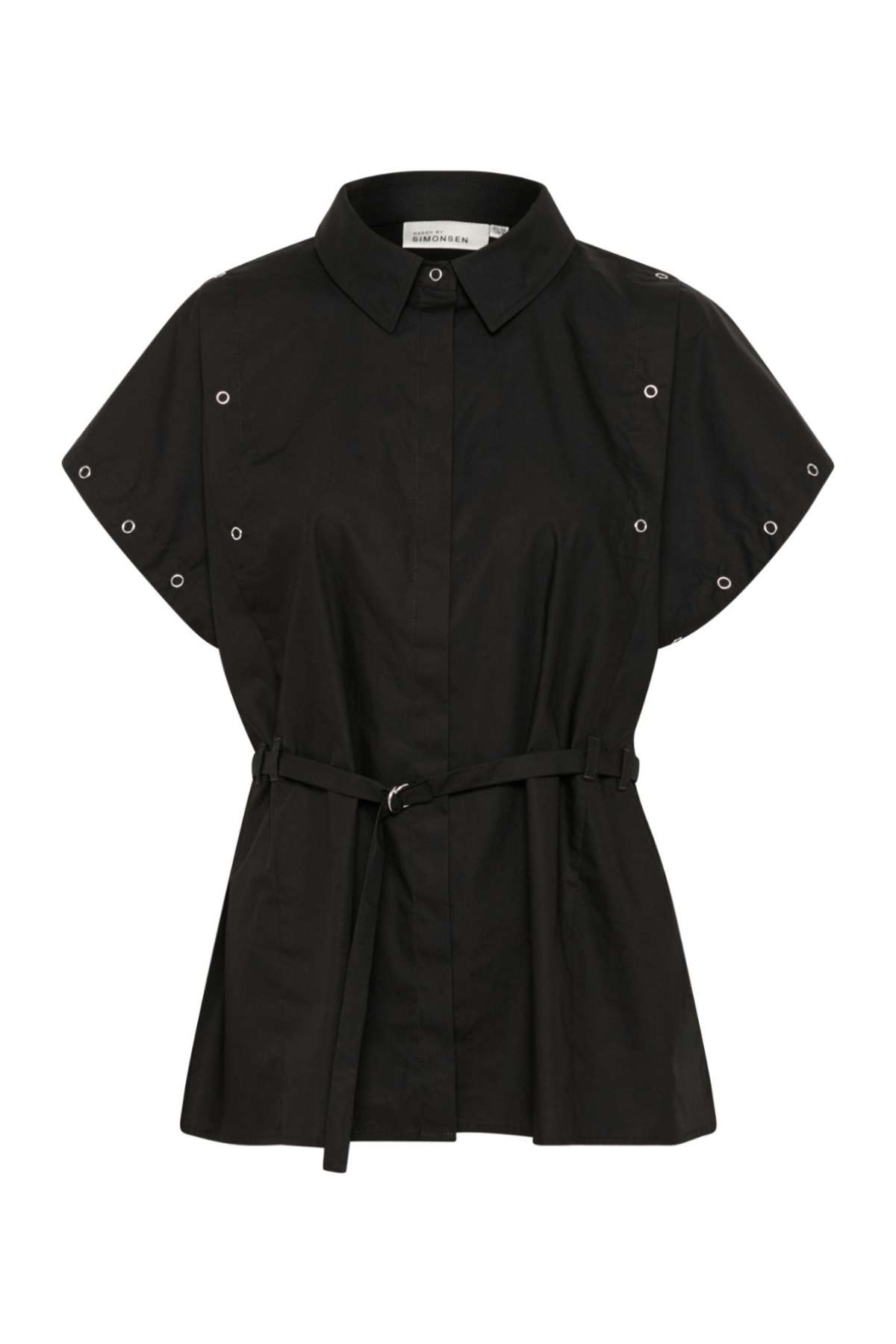 The Vicky Shirt in Meteorite by Karen by Simonsen is a breezy, lightweight short-sleeved shirt designed for effortless summer dressing. Crafted from a soft, drapey fabric, it features a classic collar, subtle hidden button closure, and a belted waist that defines your silhouette while maintaining a relaxed, oversized fit.