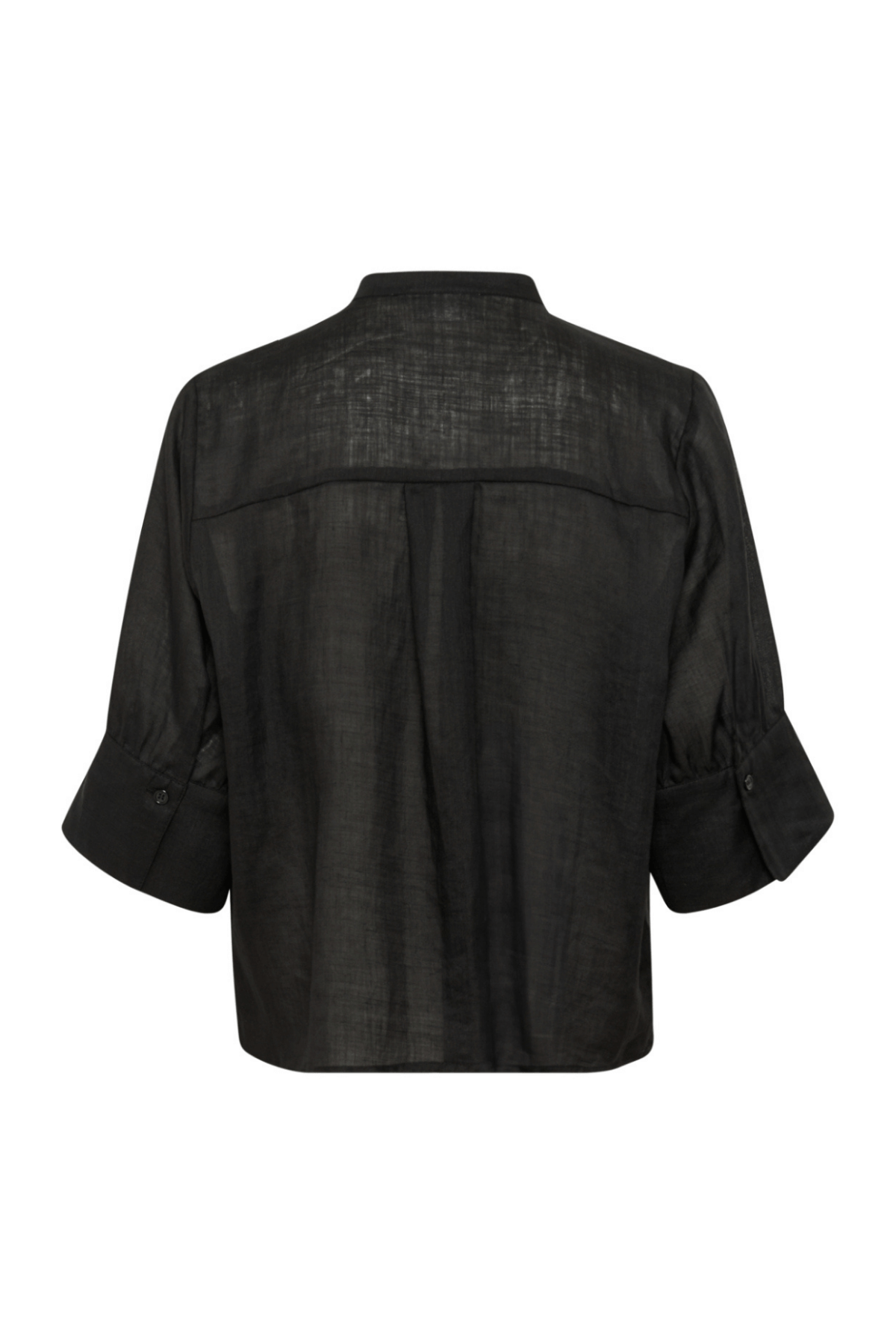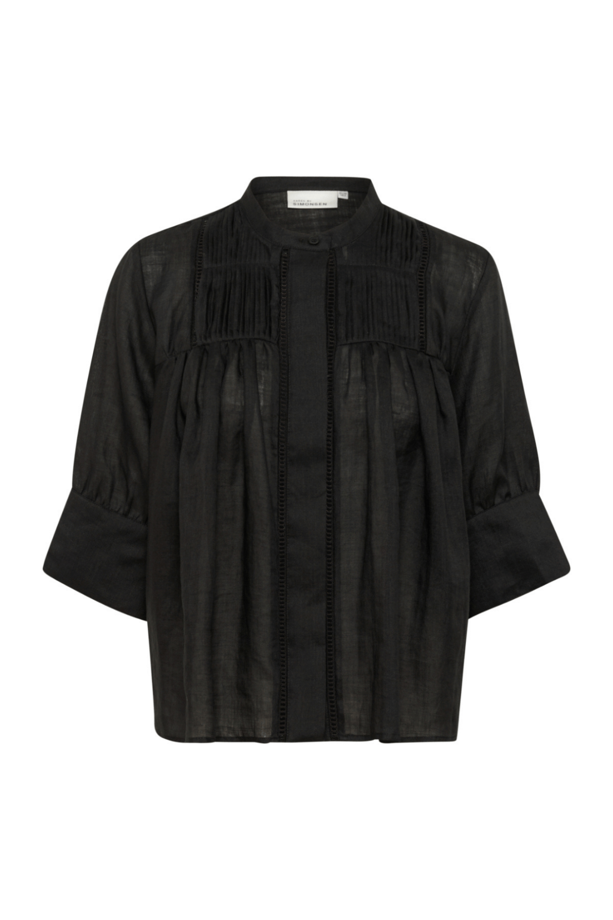 The Vilde Blouse in Meteorite by Karen by Simonsen combines structure and ease for a versatile wardrobe staple. Crafted from 100% ramie, this airy hip-length blouse features a round neckline, vertical panel detailing, and wide 3/4 sleeves with statement cuffs.