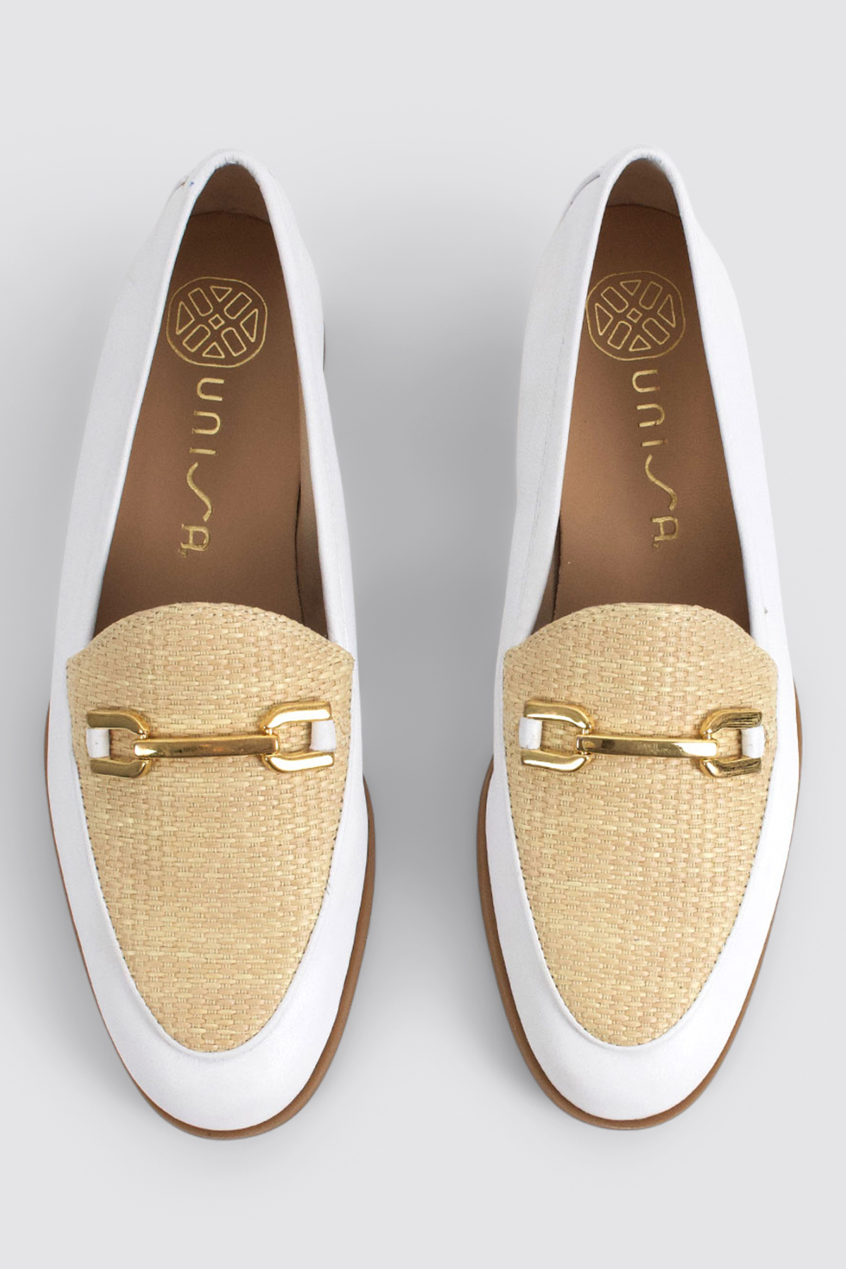 The Dalcy loafer by Unisa blends leather with raffia for a fresh update. Finished with a rounded toe, metal trim, and flexible non-slip sole for daily wear. Lightweight and flexible, with a soft lining for all-day ease, Dalcy is the versatile piece you’ll reach for season after season.