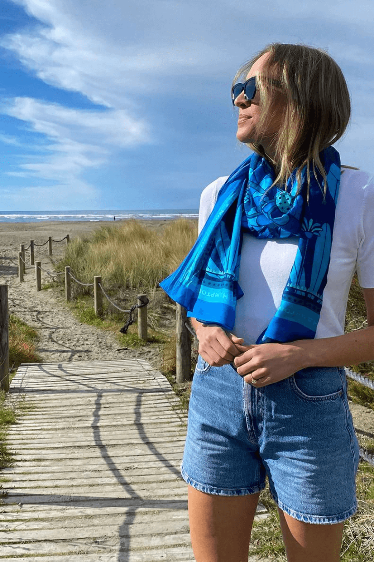 Discover the DH x Kyla K Mae Scarf & Sarong, a beautifully versatile accessory born from the collaboration between Kyla K and Dark Hampton. Crafted from a luxurious blend of silk and rayon, this piece features Kyla K’s vibrant and signature artwork. Its rich hues make it a statement addition to any wardrobe, ideal for effortless transitions between the city and the beach. The Mae Scarf can be worn as a scarf, sarong, or shawl, making it perfect for travel or casual outings.