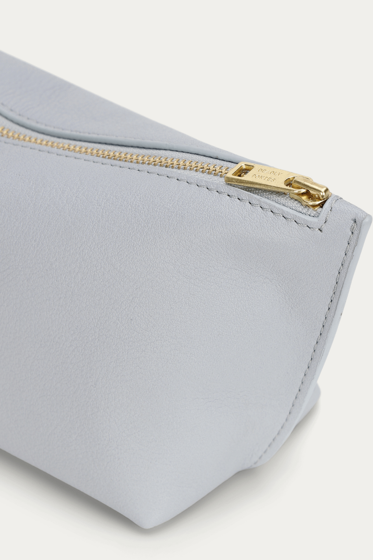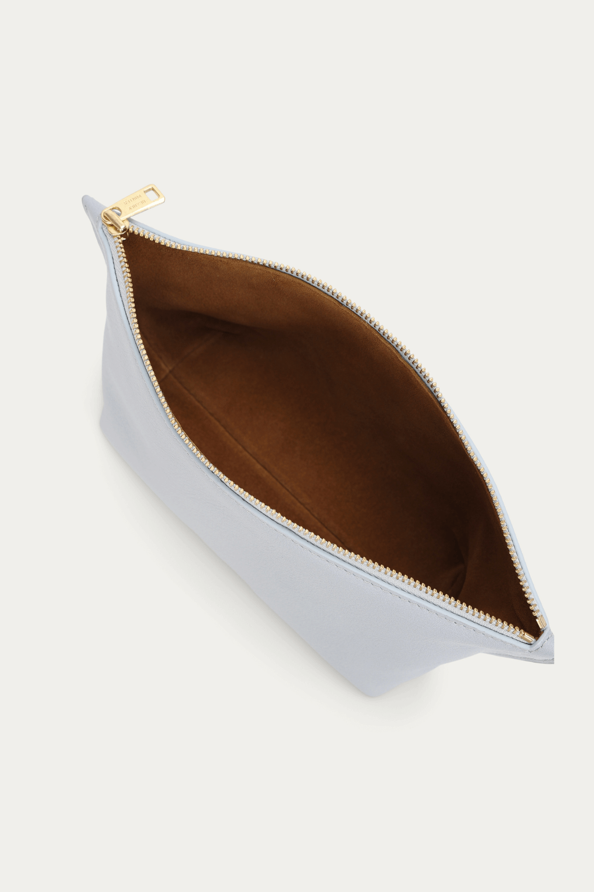 Poucher Grande in Iceberg offers spacious elegance with buttery Calf Nappa and soft suede lining - a refined pouch for daily essentials. This roomy pouch balances luxe materials and practical design. Crafted in smooth Iceberg Calf Nappa, it features a plush calf suede interior for protection and a secure brass zip closure, perfect for organising your essentials with subtle sophistication.